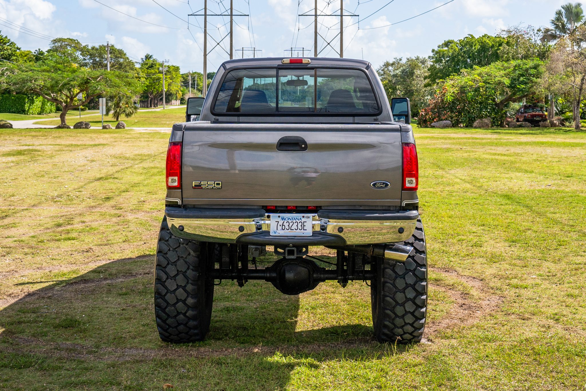 The 20″ XD Series wheels are mounted with 365/85 Michelin XZL tires with 2008 date codes. The truck has been fitted with a custom-fabricated 14″ suspension lift kit with Atlas leaf springs, while traction bars have been added out back. The front axle is equipped with Warn manually locking hubs, and stopping power is provided by four-wheel disc brakes.