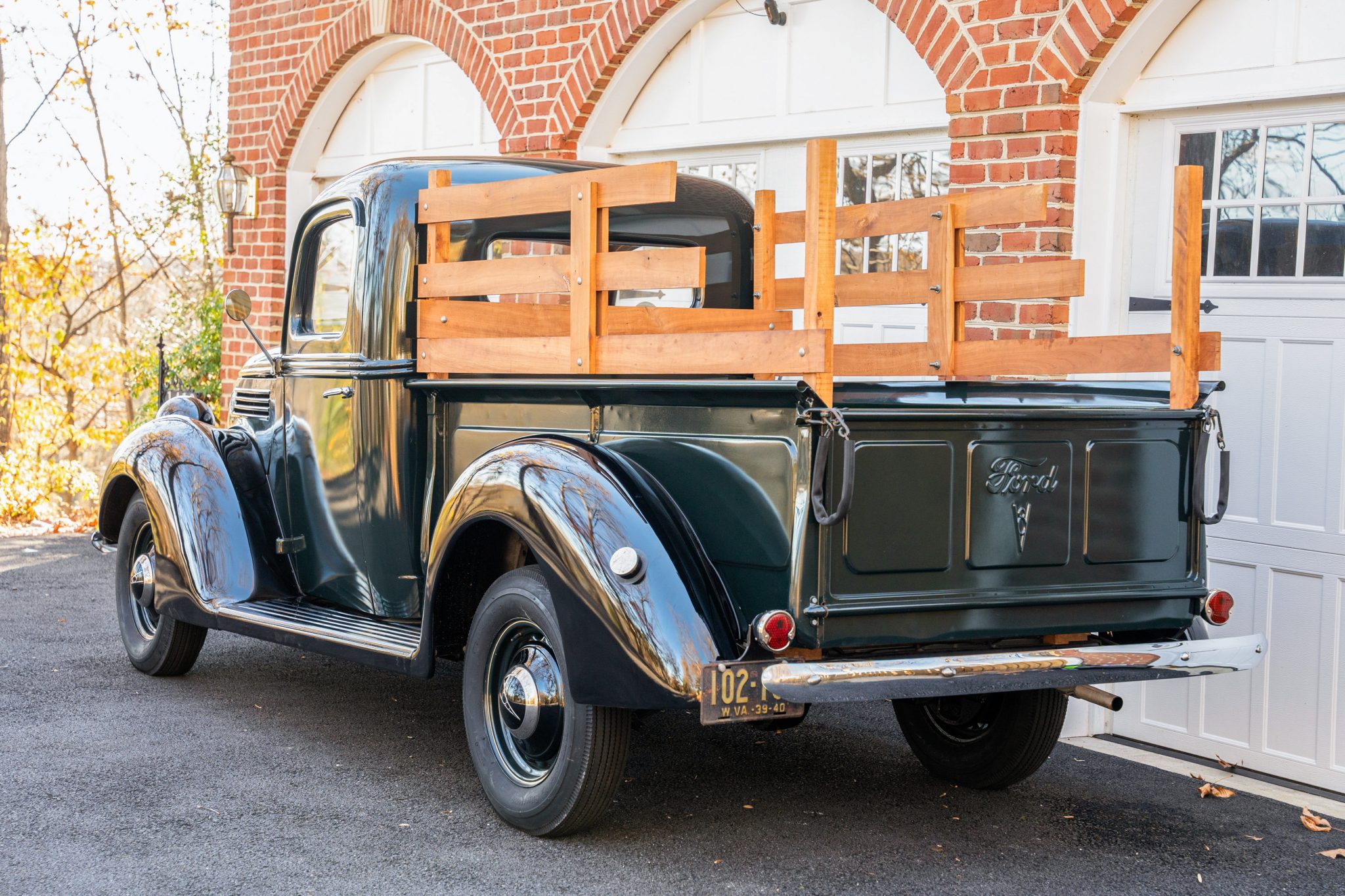 Body-color 16″ steel wheels wear black hubcaps and are mounted with BFGoodrich Silvertown tires, and a matching spare is mounted on the right side of the bed. The brake master cylinder and wheel cylinders were rebuilt and the hub grease seals, brake hoses, parking brake cable, and front axle bumpers were replaced in the spring of 2024.