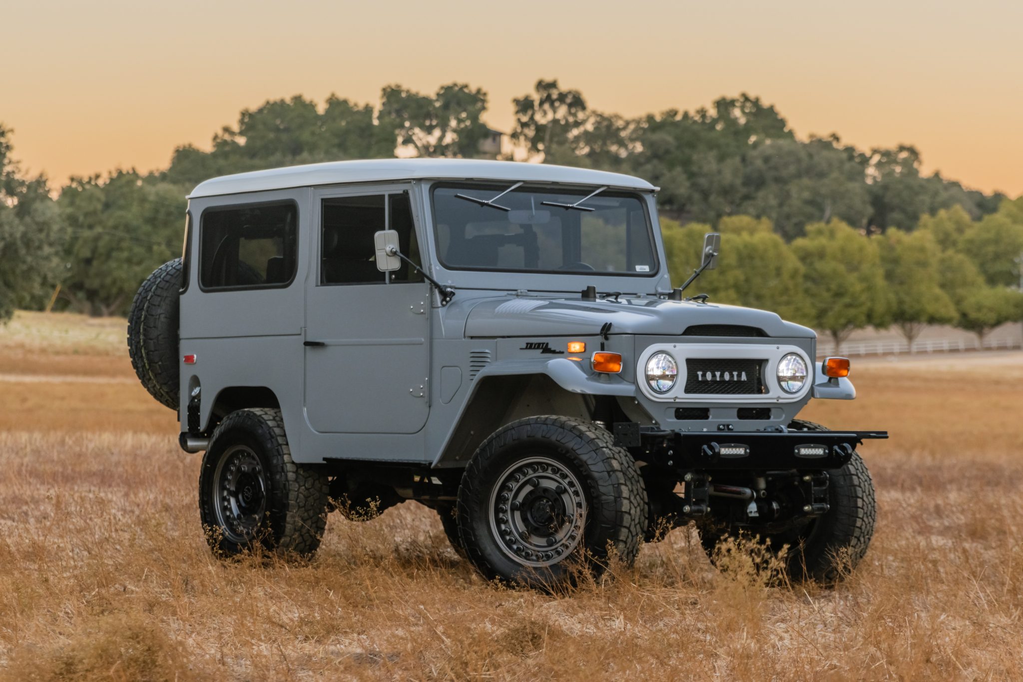 The 17″ Black Rhino Hard Alloy wheels are mounted with 285/70 Toyo Open Country tires. A matching spare is secured to a swing-out carrier at the rear. The truck is equipped with manually locking front hubs, power steering, and a Rough Country steering stabilizer and shocks.