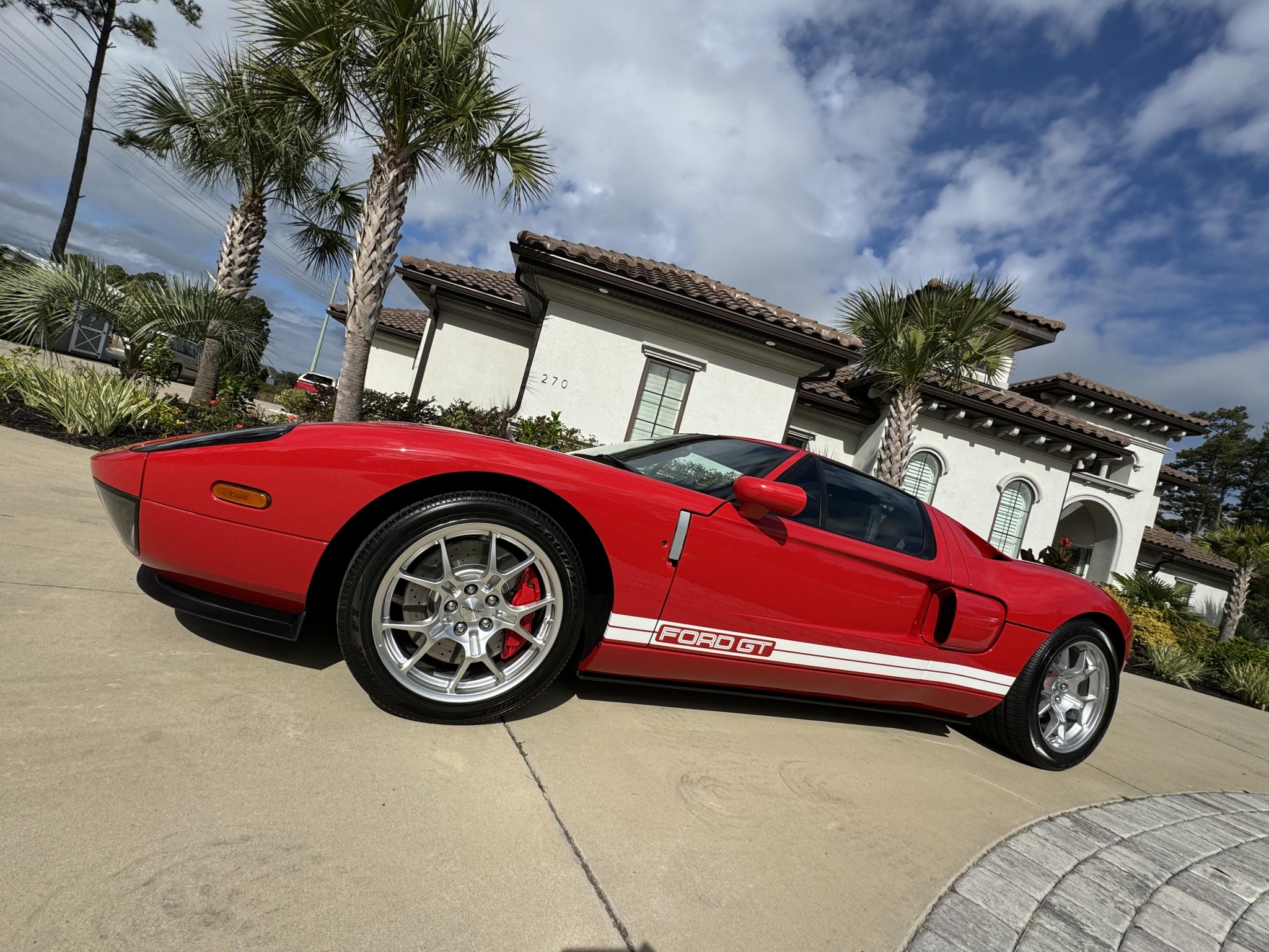 Factory-optional BBS forged lightweight aluminum wheels measure 18” up front and 19” out back and are mounted with Goodyear Eagle F1 Supercar tires that measure 235/45 and 315/40, respectively. The Brembo braking system features optional red-painted four-piston monoblock calipers with cross-drilled and ventilated rotors that measure 14” up front and 13.2” out back.