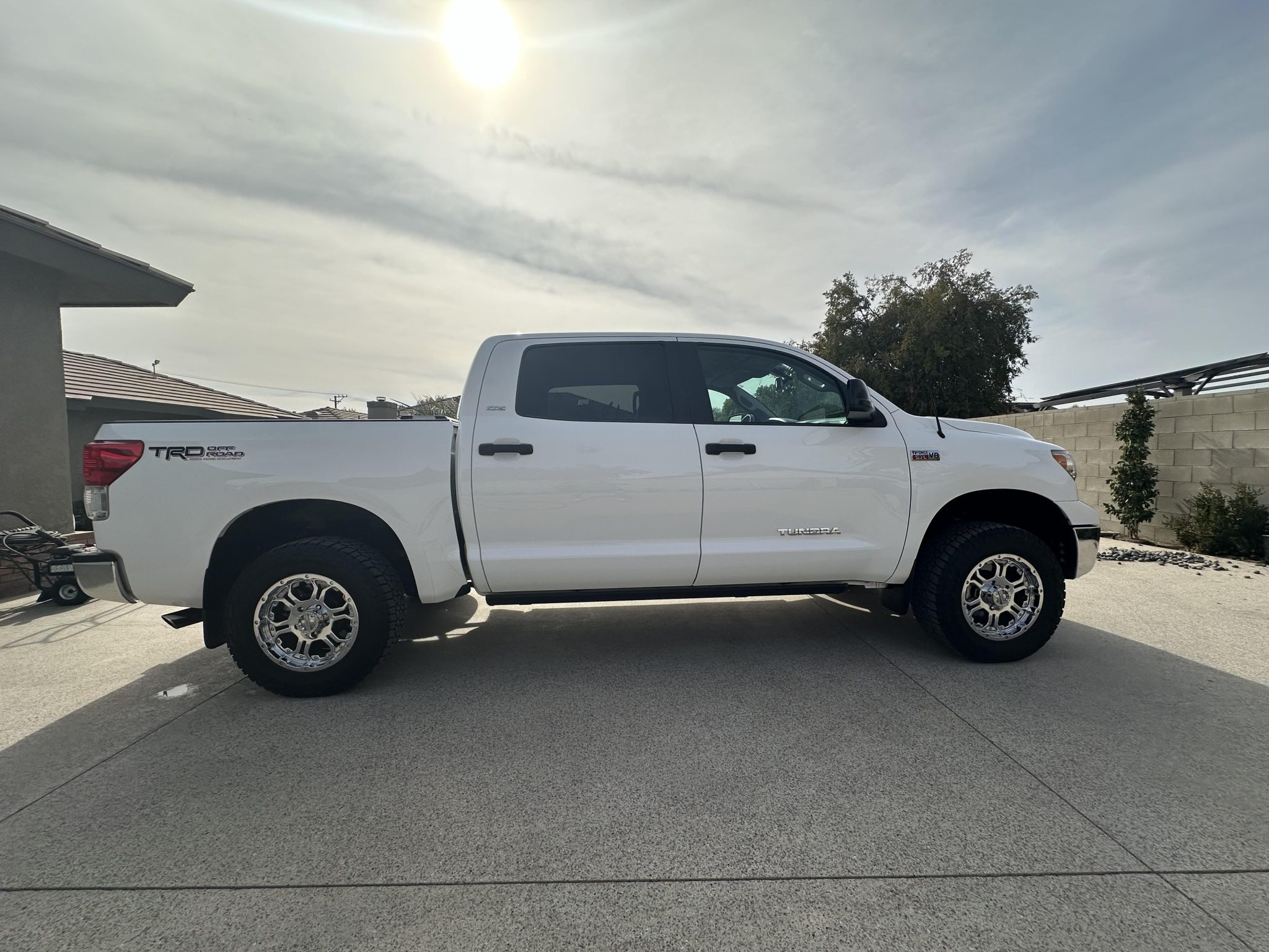 Chrome 18×9″ Gear Off Road wheels are mounted with Falken Wildpeak A/T tires measuring 275/65, and braking is provided by power-assisted discs at each corner. The TRD Off-Road Package added an off-road suspension with Bilstein shocks. A 2″ front leveling kit has been added.