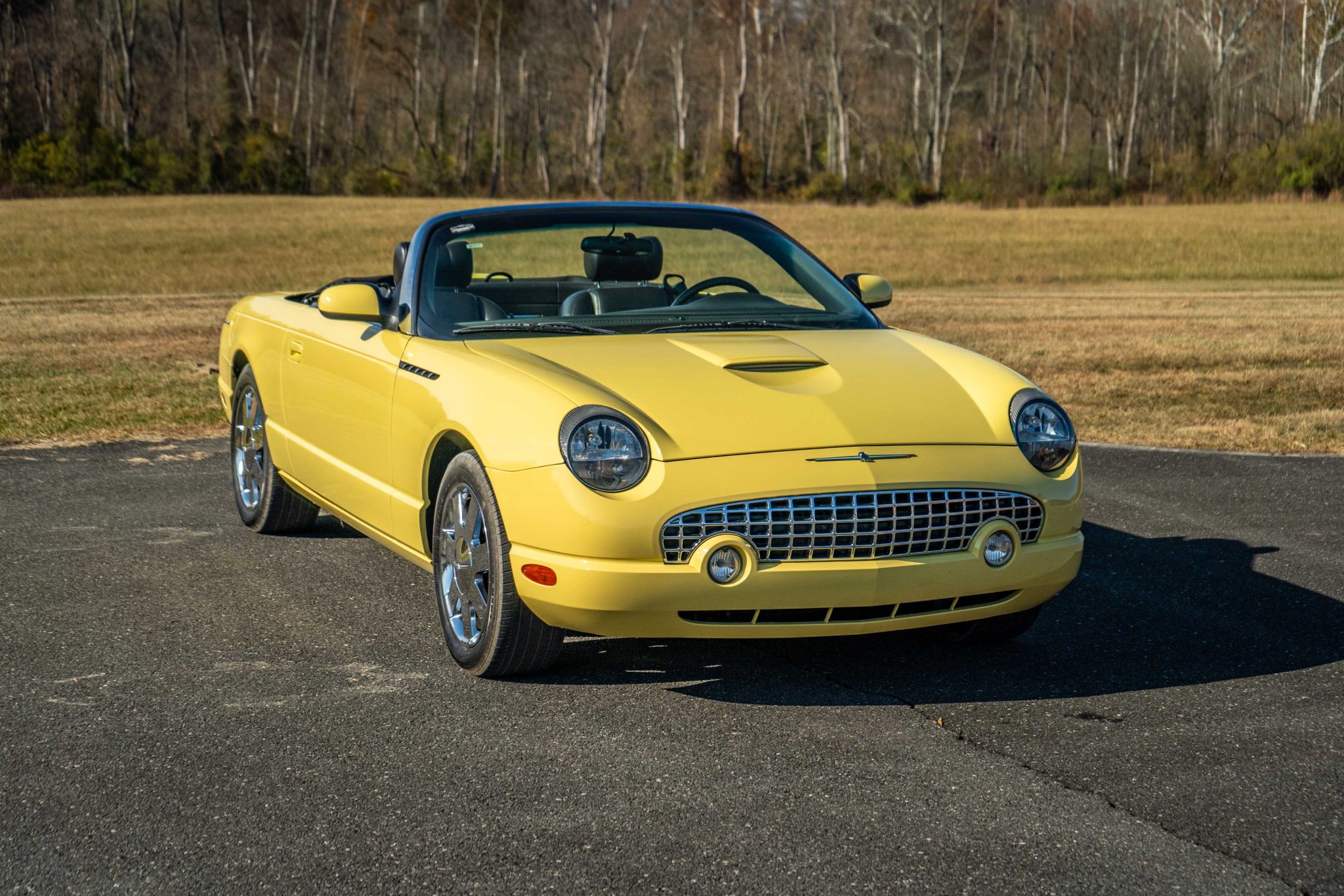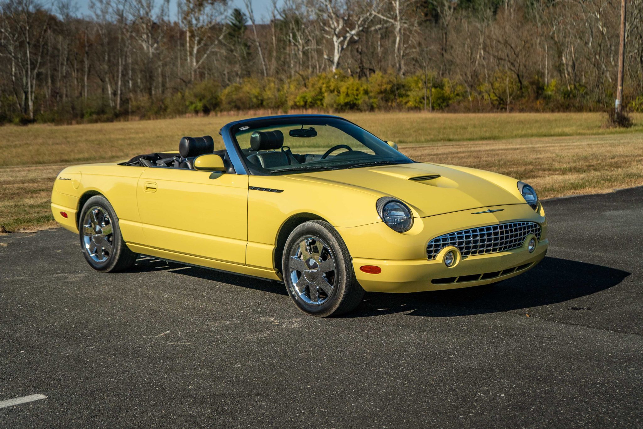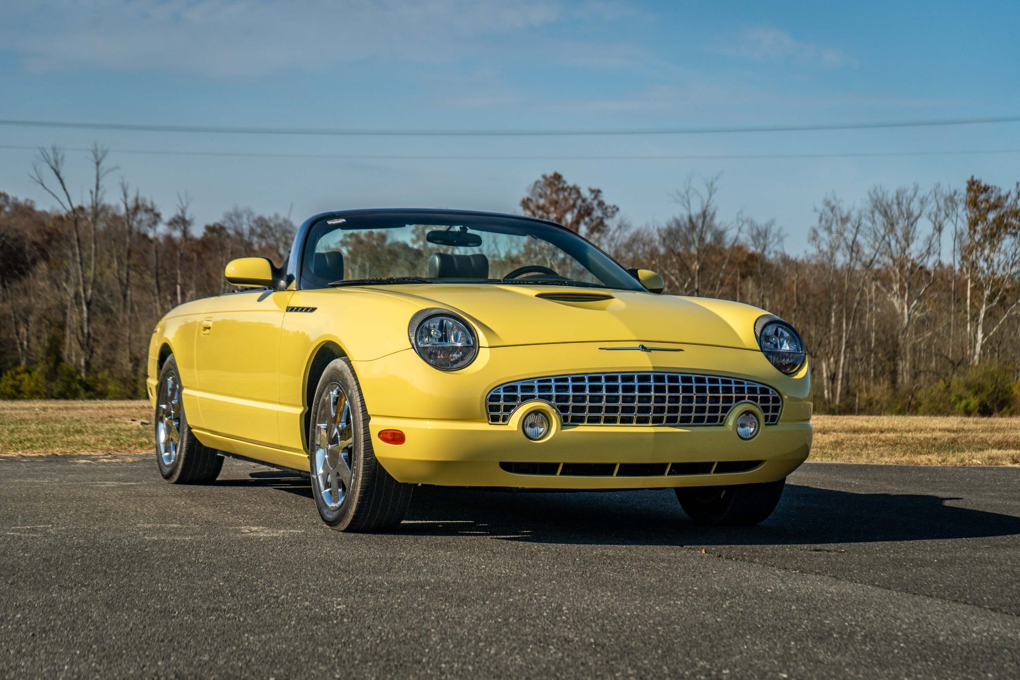 The 17″ seven-spoke chrome wheels feature Thunderbird-branded center caps and are mounted with 255/50 Michelin HX MXM4 tires. The car is equipped with traction control, four-wheel independent suspension, and ventilated disc brakes.