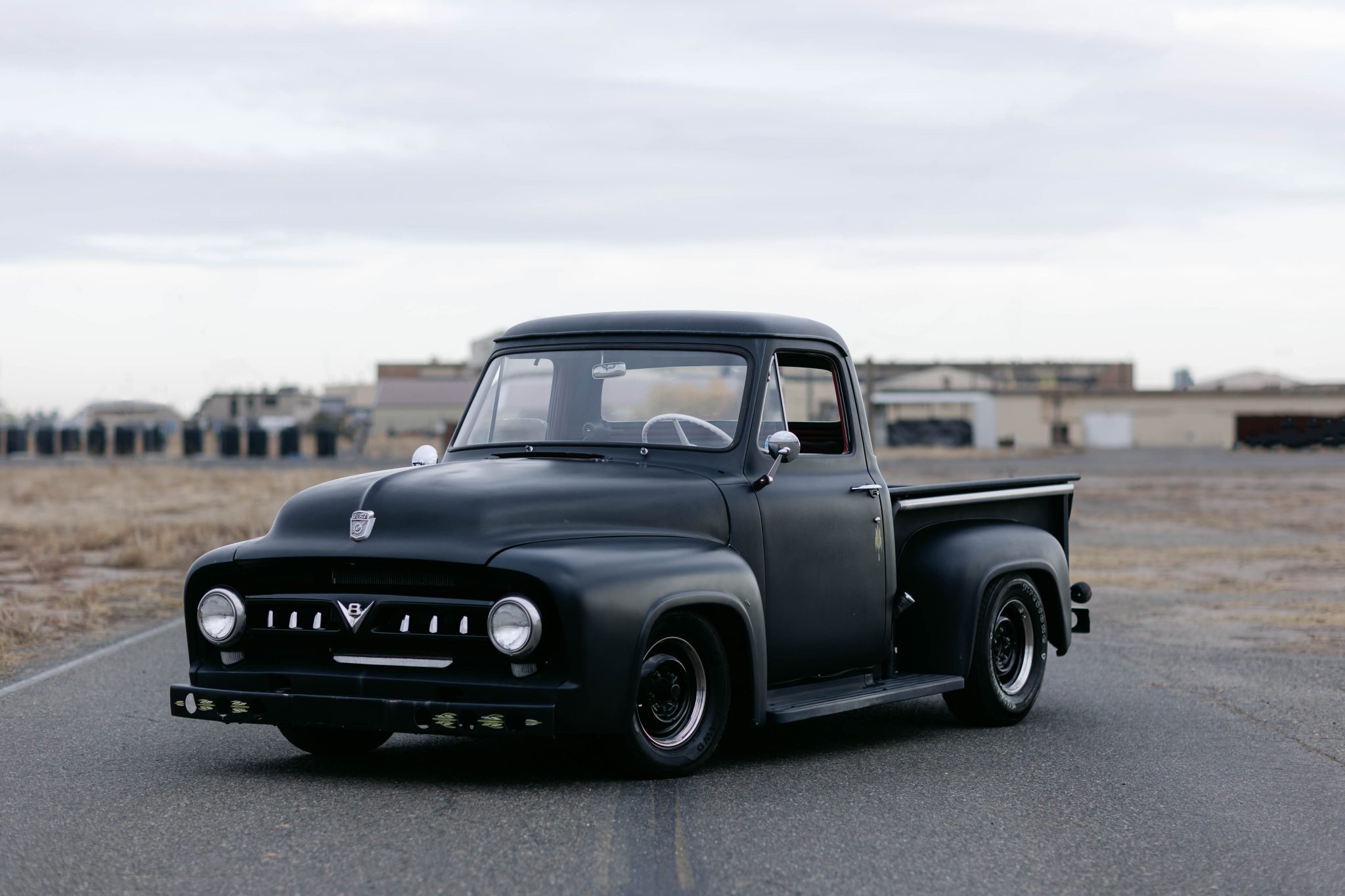 The 15″ painted steel wheels wear polished trim rings, and they are mounted with Goodyear Wrangler tires measuring 215/70 up front and 245/70 out back. Stopping power is provided by upgraded disc brakes on the front and drums in the rears. The suspension has been lowered with a dropped front axle and a set of hubcaps are included in the sale.
