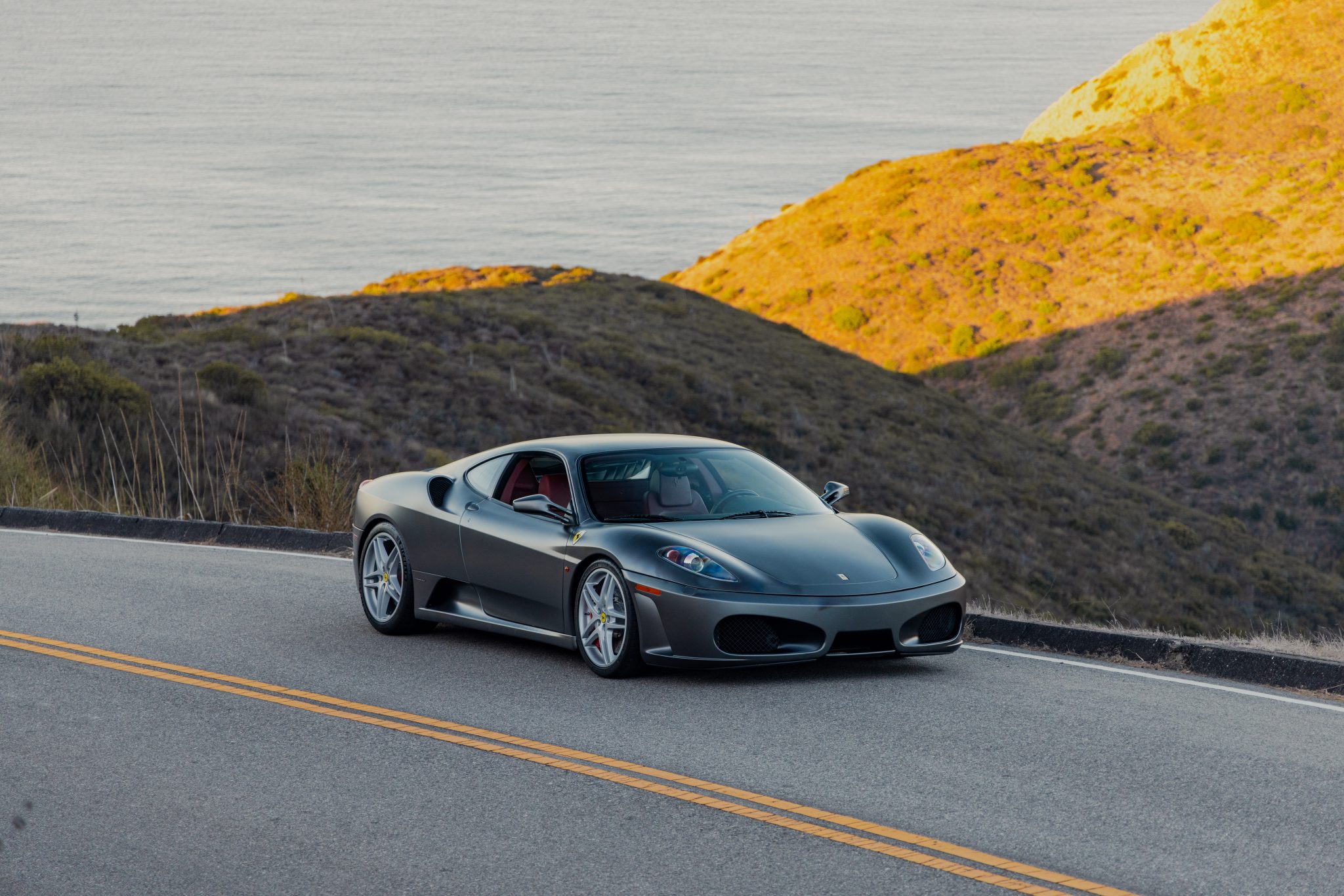 Refinished 19″ split-spoke alloy wheels are mounted with Michelin Pilot Sport 4S tires. Braking is handled by red Ferrari-branded brake calipers over a cross-drilled carbon-ceramic rotor at each corner. The left and right lower ball joints were replaced in 2021.
