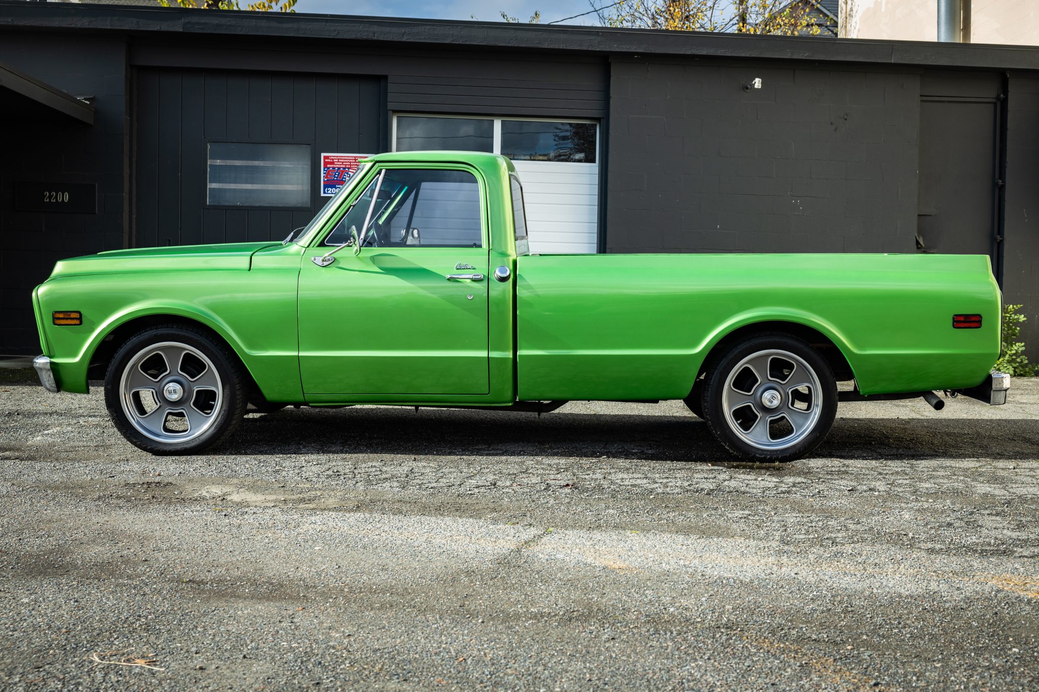 US Mags 20″ alloy wheels wear 255/45 Continental ExtremeContact tires, and stopping power is from power-assisted drum brakes. The ride height is lowered with modified suspension featuring front upper and lower control arms with coil springs as well as a solid rear axle with leaf springs.