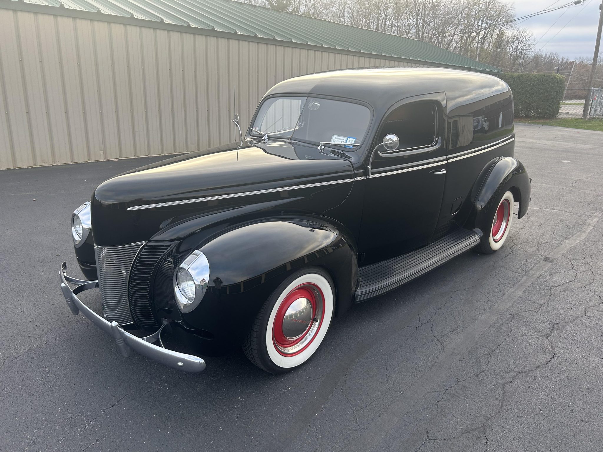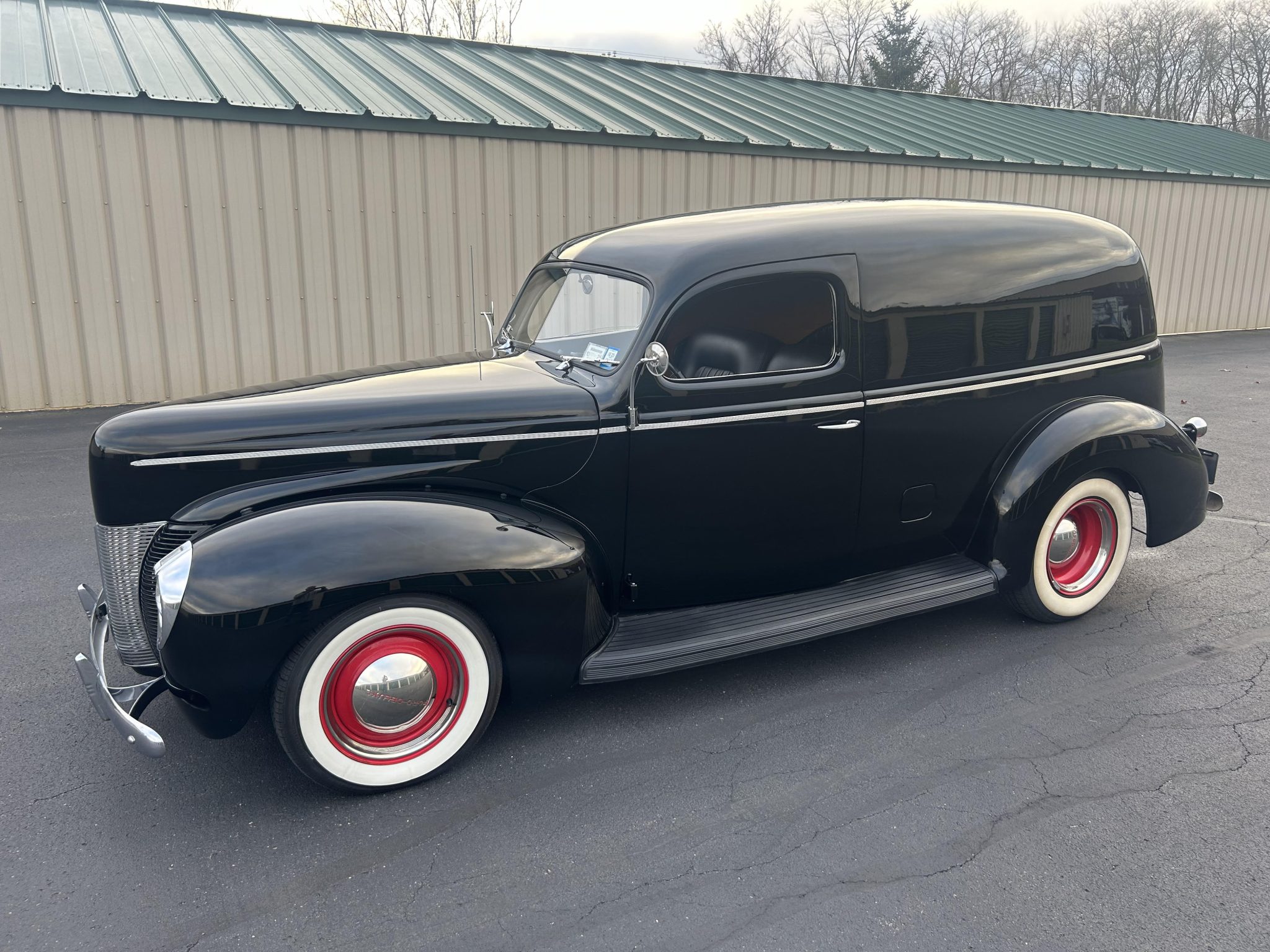 Red-finished 15″ wheels wear chrome trim rings and Ford Deluxe–branded smoothie covers. Coker classic whitewall tires up front are paired with Hankook Kinergy tires out back. The car has been fitted with a Mustang II–style front suspension with power rack-and-pinion steering as well as a longitudinal rear leaf spring setup with hydraulic shocks. Further suspension modifications include Aldan American adjustable front coilovers as well as front and rear sway bars. Braking is handled by power-assisted front discs and rear drums.