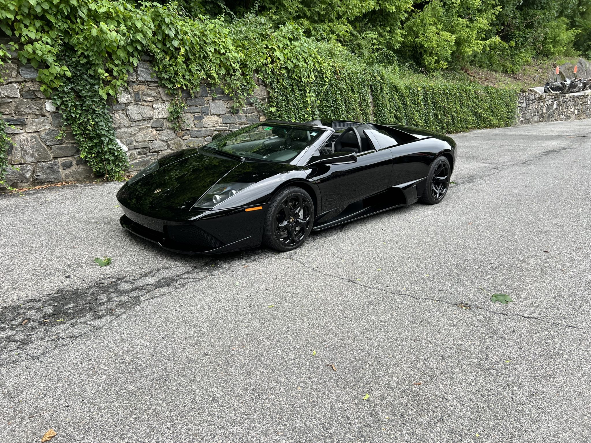 Black 18″ Hercules alloy wheels are mounted with 245/35 front and 335/30 rear Pirelli P Zero Rosso tires. The car is equipped with active dampers and a front-axle lift system. Stopping power is provided by silver-finished calipers fitted over cross-drilled rotors at each corner.