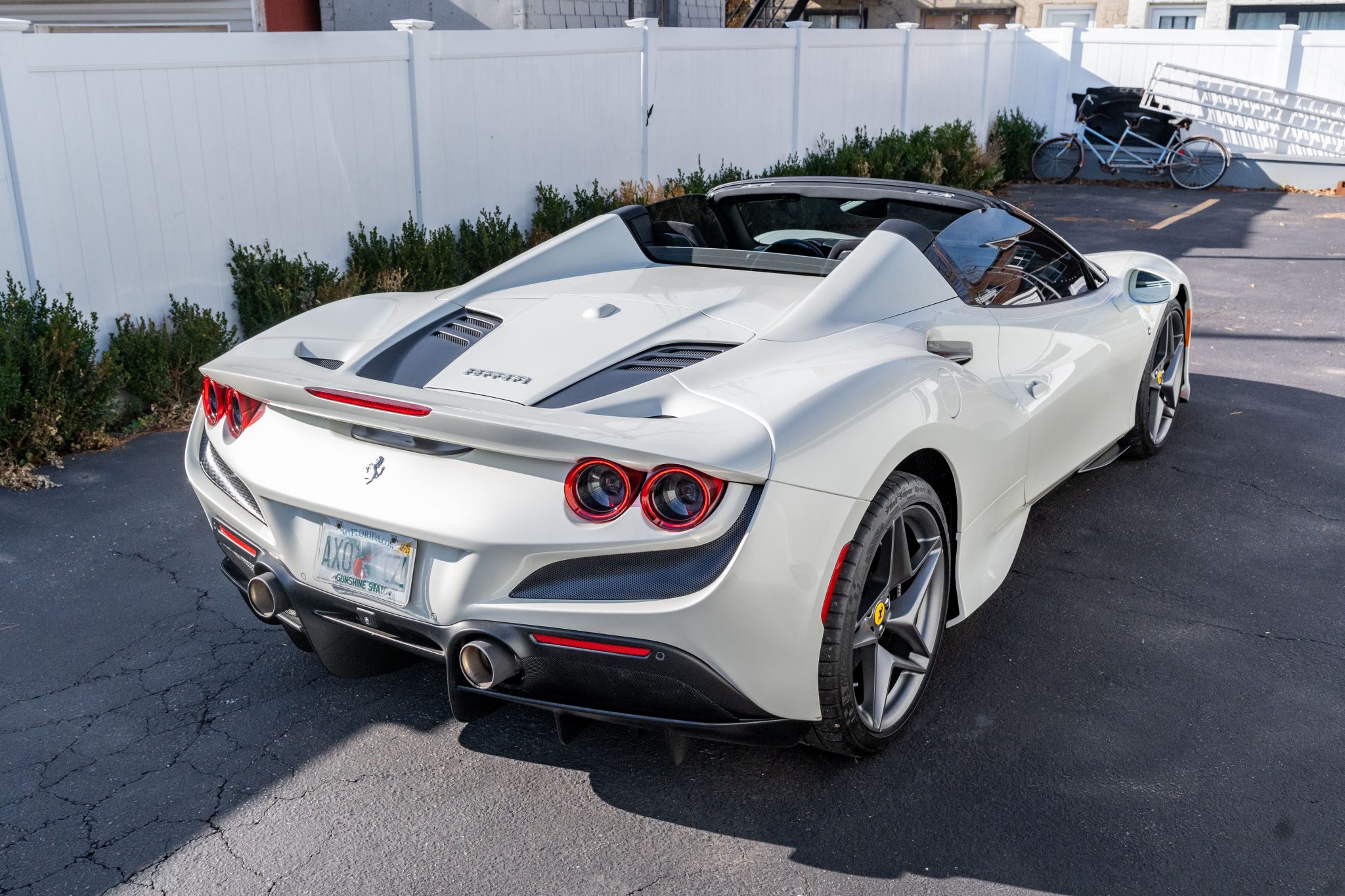 The 20″ double five-spoke alloy wheels are mounted with Michelin tires. The car is equipped with an SCM-E magnetorheological suspension and a front-axle lift system, and braking is handled by Brembo calipers fitted over cross-drilled carbon-ceramic rotors at each corner.