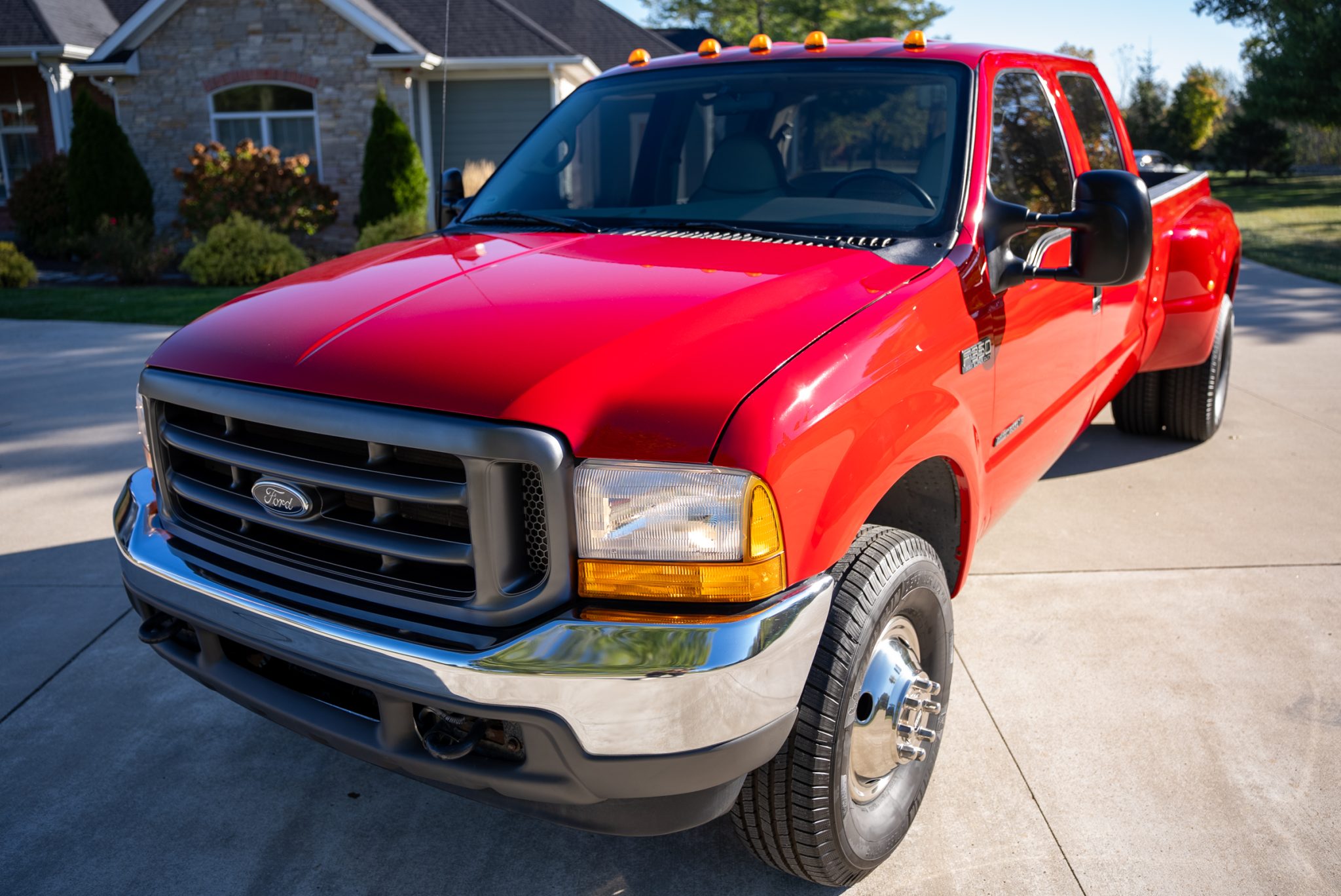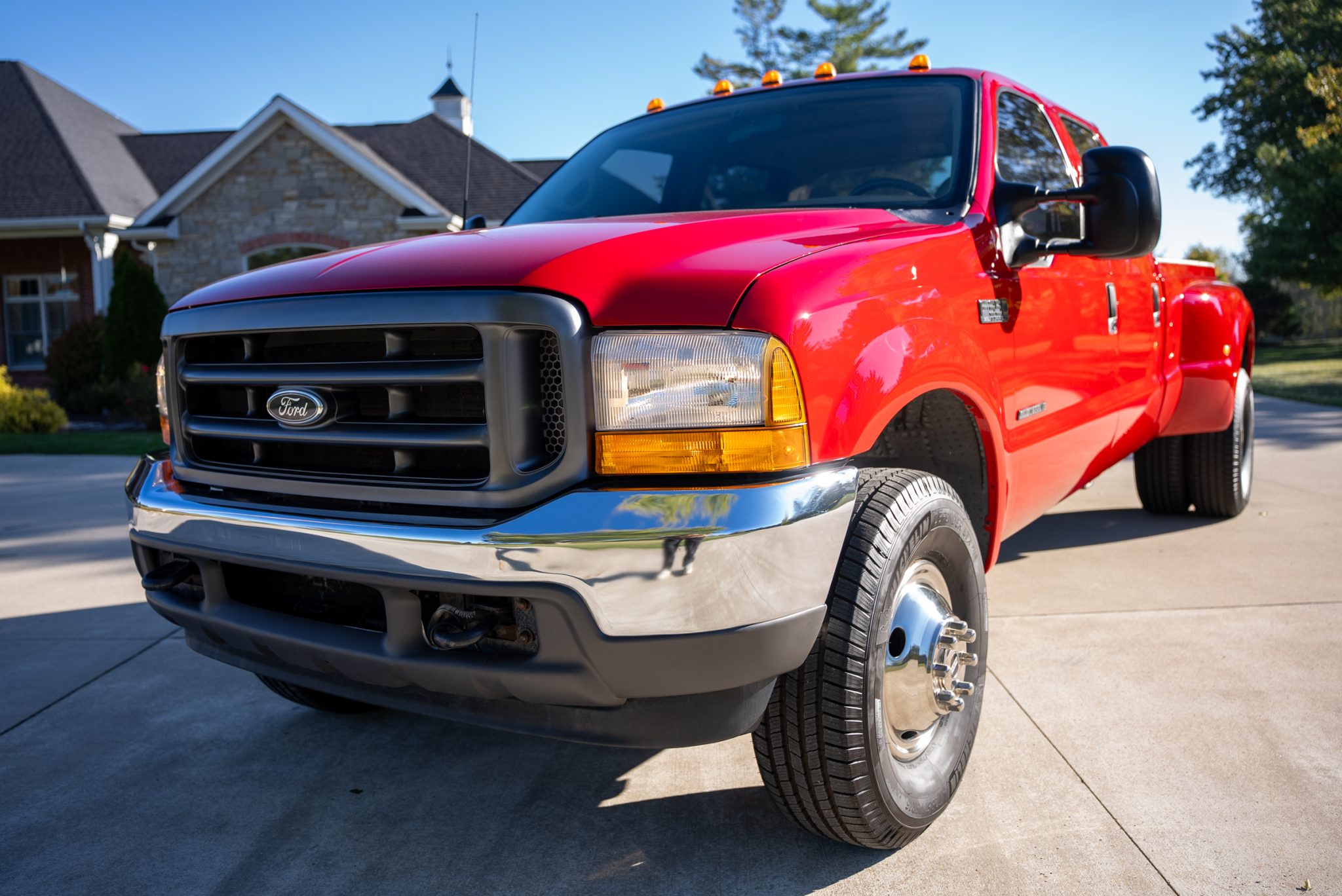 Chrome-finished 16″ Pacific Dualies wheels are mounted with 285/75 Michelin Defender LTX M/S tires. The truck is equipped with a dually rear axle and stopping power is provided by four-wheel disc brakes. The sway bar links are noted to have been replaced.