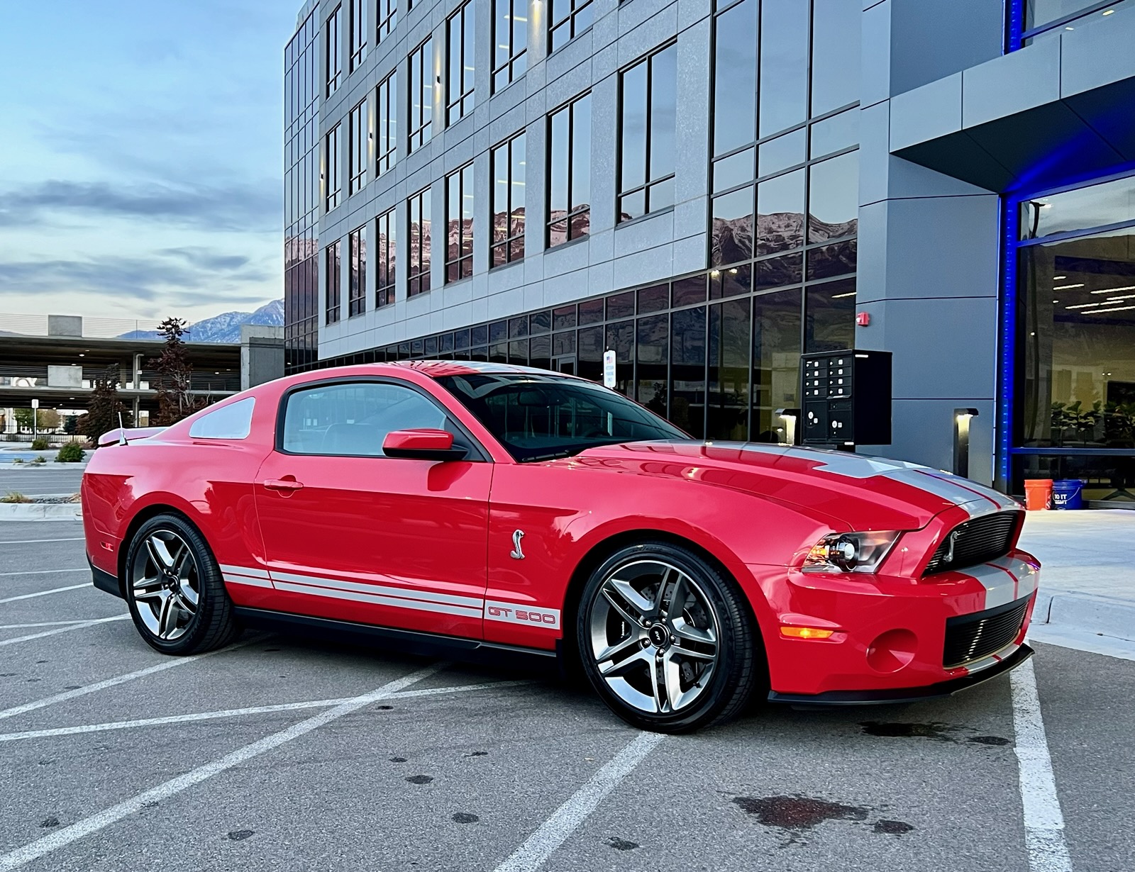 The 19″ twin-spoke alloy wheels are mounted with older Goodyear tires. The selling dealer states that Ford Racing suspension components are installed along with Brembo front calipers and slotted and cross-drilled rotors.