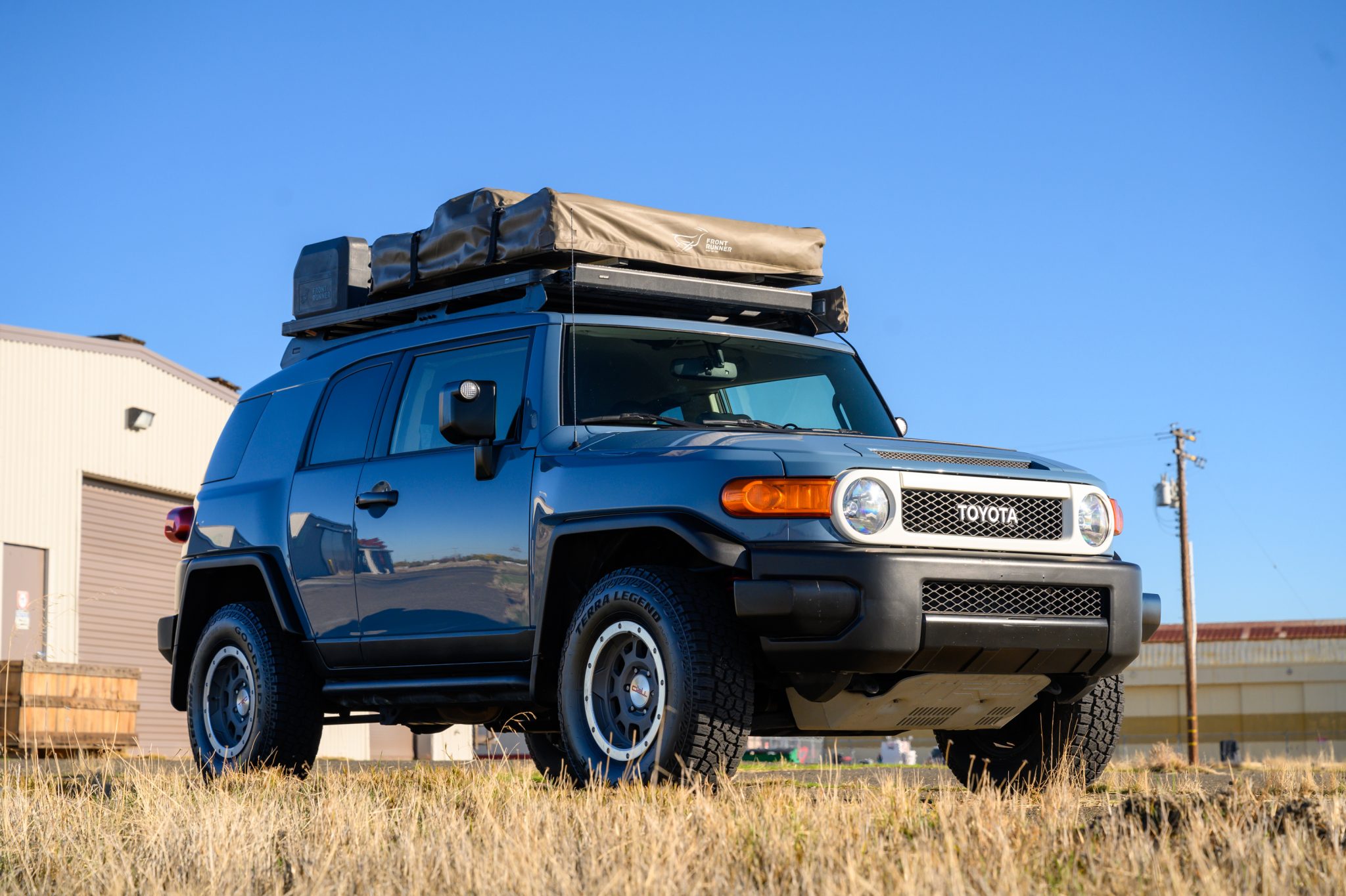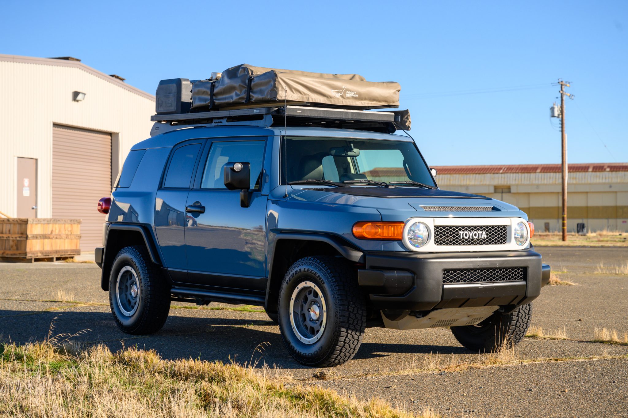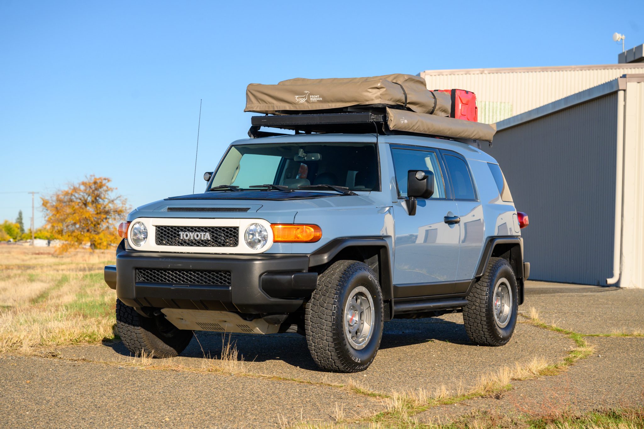 The 16″ TRD alloy wheels are mounted with 265/75 Goodride Terra Legend tires, and a matching spare is mounted to the swing-away tailgate. The truck is equipped with TRD Bilstein shocks and Active Traction Control (A-TRAC).