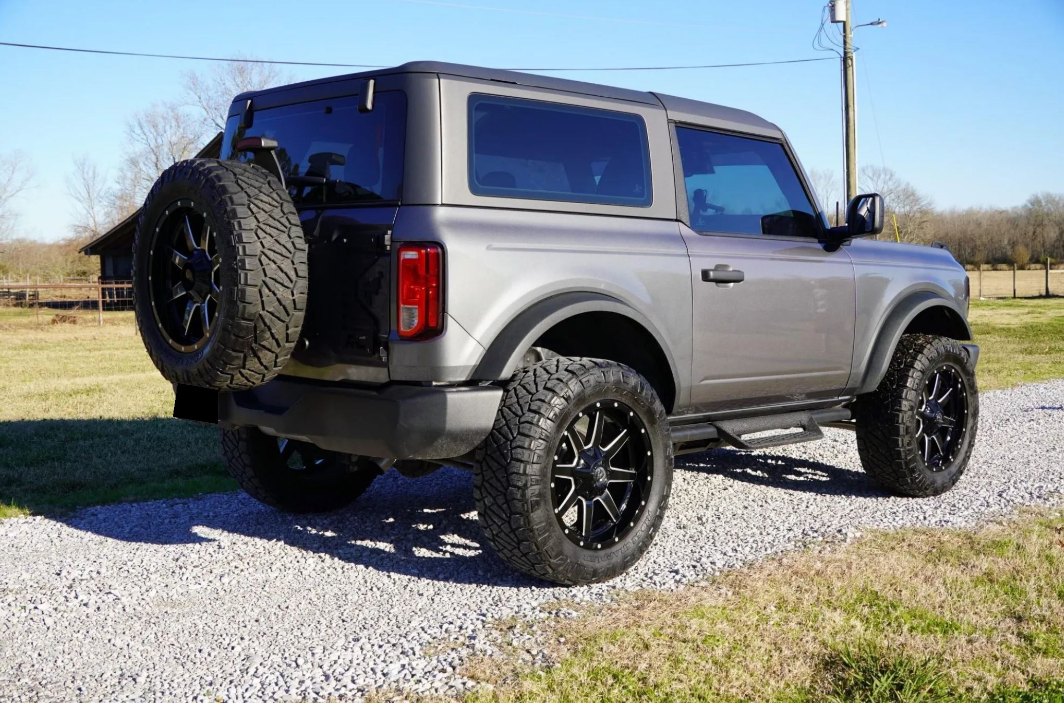 The 20″ Fuel alloy wheels are wrapped with 285/60 Nitto Ridge Grappler tires, and a matching spare is affixed to the aftermarket spare tire support mount. A suspension leveling kit has been fitted, and the truck is equipped with a Terrain Management System with seven selectable “Goes Over Any Type of Terrain” (G.O.A.T.) drive modes.