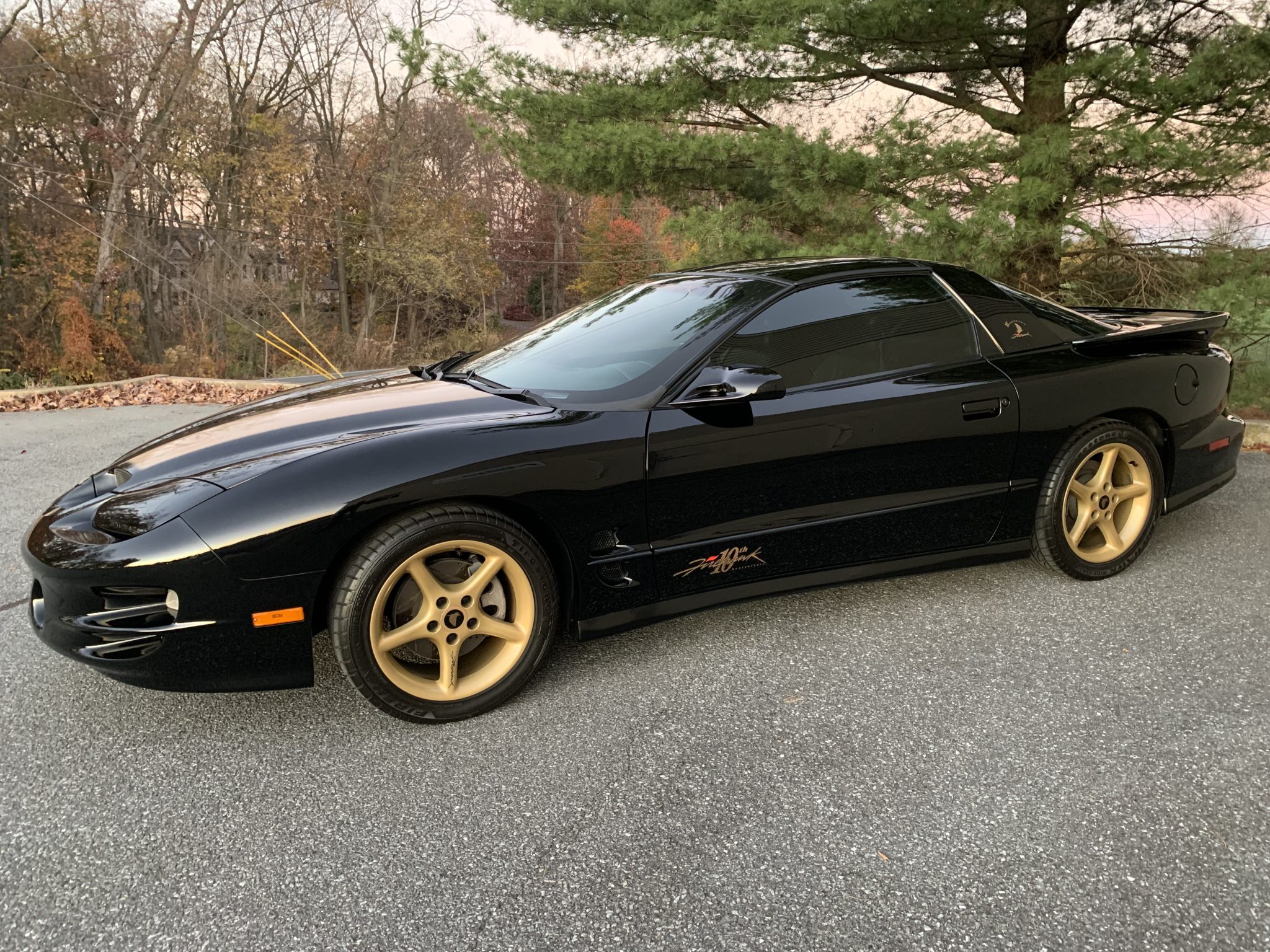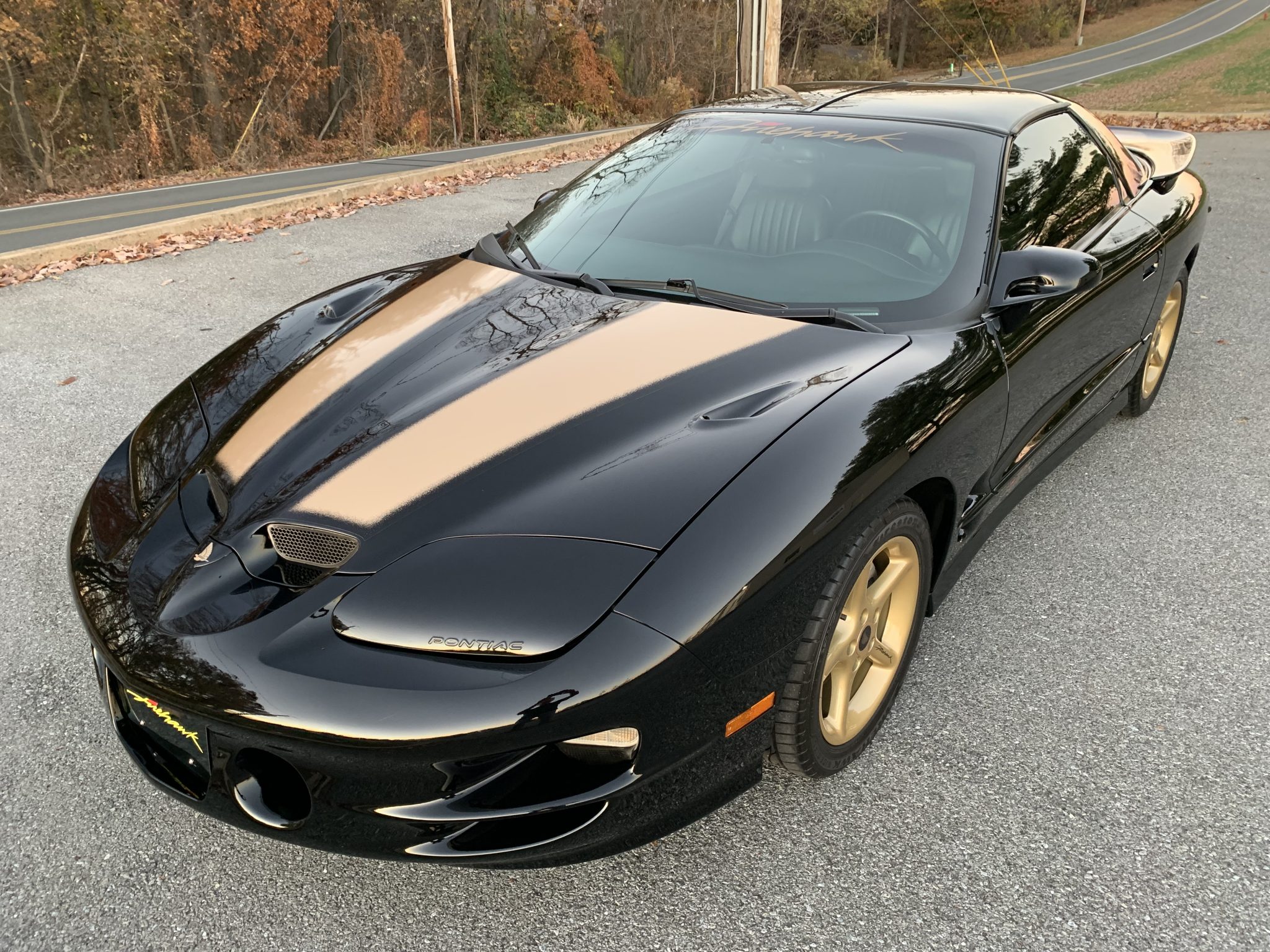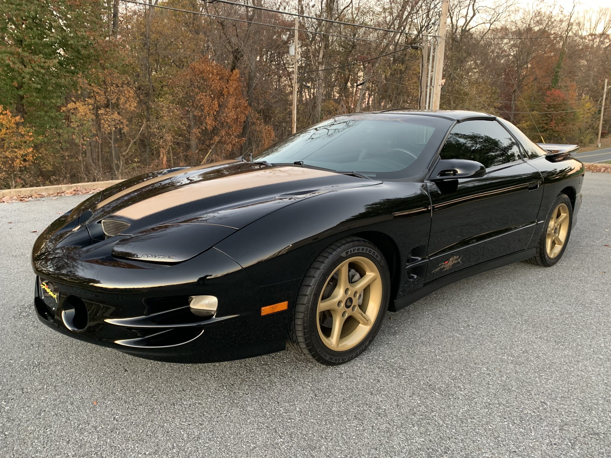 Gold-painted 17″ five-spoke wheels have been refinished and are mounted with 275/40 Firestone Firehawk Indy 500 tires. Drilled and slotted rotors are fitted at all four corners, and a Bilstein Ultra Performance suspension was added as part of the SLP modifications.