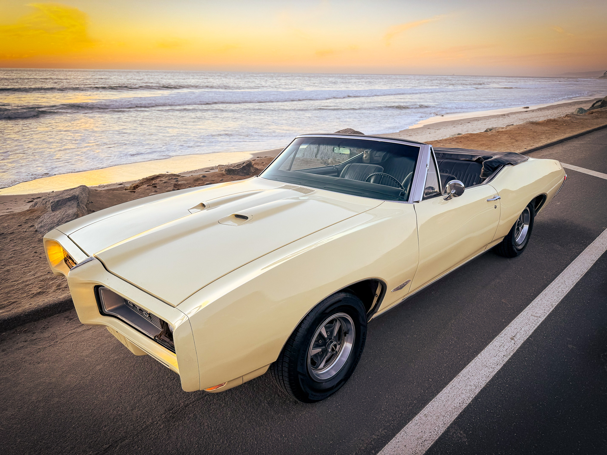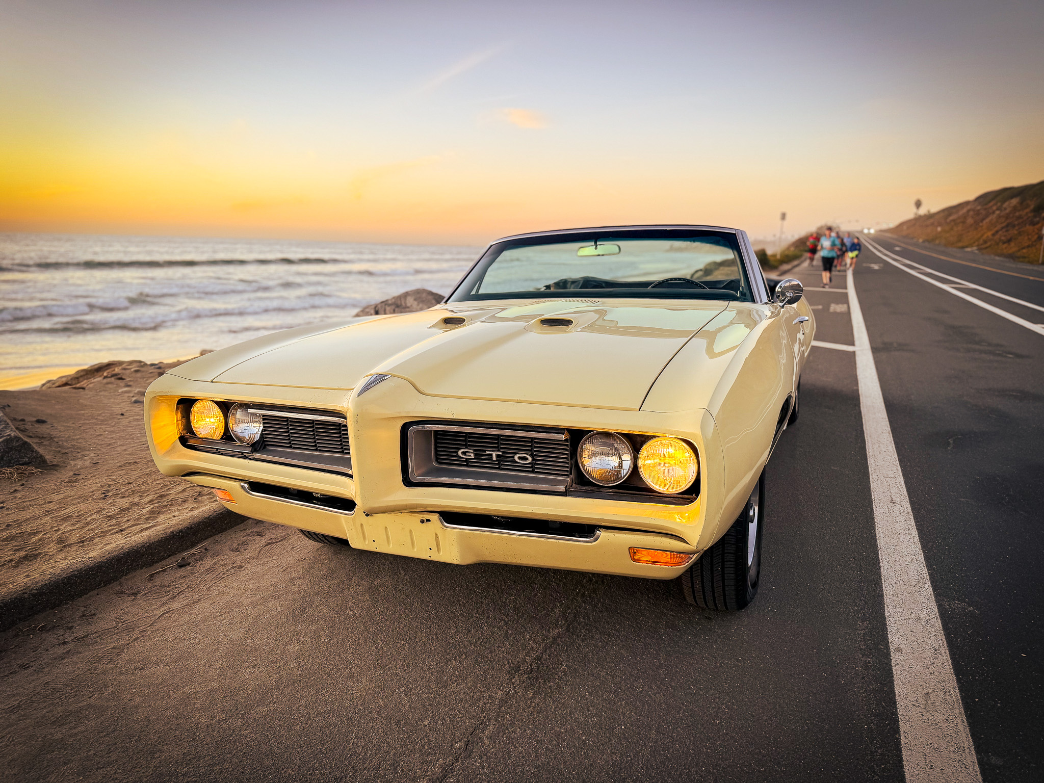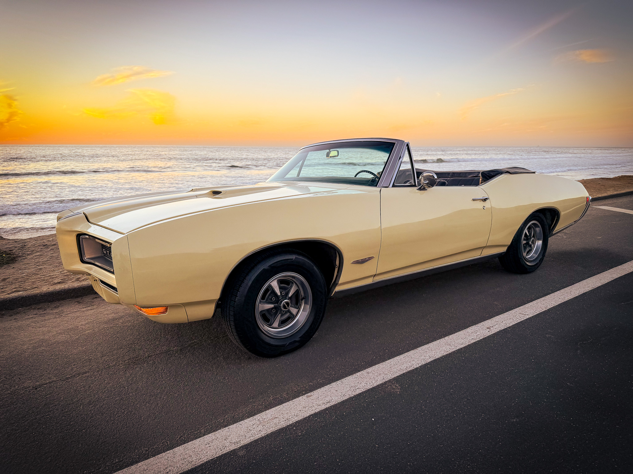 The 14″ Rally II wheels are mounted with 225/70 Hankook Kinergy tires, and a full-size spare is located in the trunk. The car is equipped with power steering and power-assisted front disc brakes. The seller notes that CPP front upper and lower control arm assemblies, a CPP heavy-duty front sway bar, replacement front coil springs, and heavy-duty front gas shocks are installed.