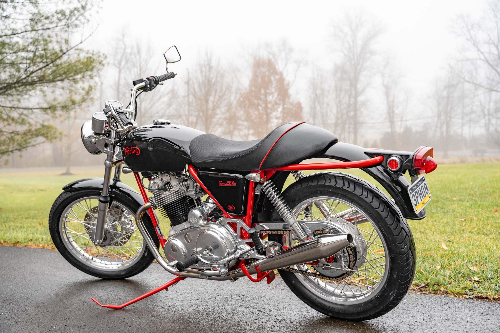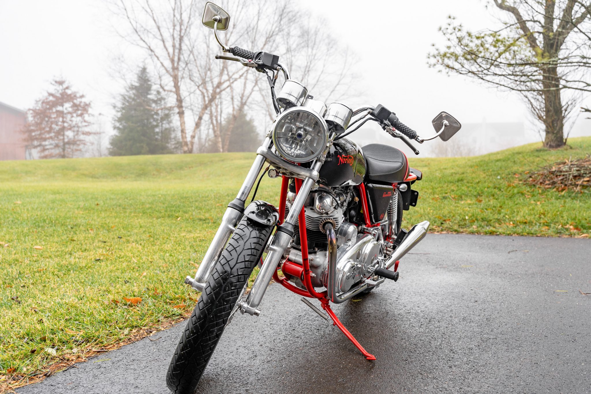 Wire-spoke wheels measuring 19″ and 18″ are laced to alloy rims and are mounted with Bridgestone Battlax tires. Suspension consists of an adjustable Landsdowne telescopic fork as well as dual preload-adjustable shocks mounted to the swingarm. Braking is handled by a polished Brembo caliper over a polished and cross-drilled floating rotor at the front joined by a drum at the rear.