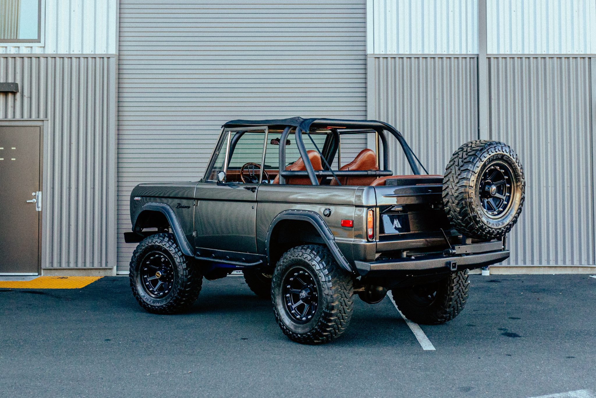 Black 17″ XD wheels are mounted with 295/70 Toyo Open Country M/T tires, and a matching spare is affixed to the swing-away tire carrier. The truck is equipped with manually locking front hubs and a James Duff suspension lift. Braking is handled by front discs and rear drums. The seller recommends an alignment.