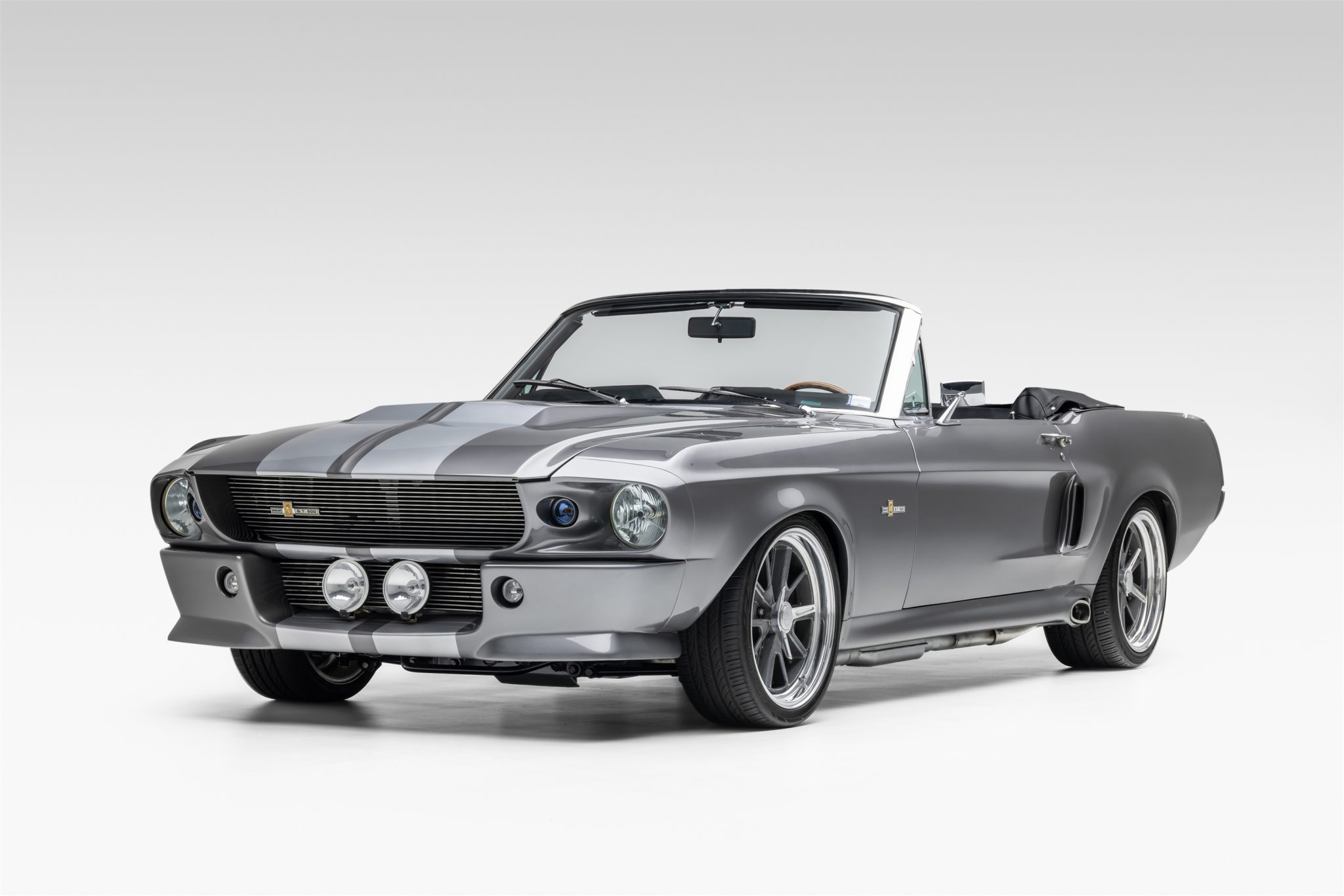 American Racing Shelby Cobra 18” wheels are finished in gray with polished lips and faux three-eared spinners, and they are wrapped in 275/35 Hankook Ventus S1 Noble2 tires. The front suspension features tubular lower control arms and adjustable coilovers, while the live rear axle is supported by track bars connected to subframe connectors and longitudinal leaf springs. The car is equipped with power-assisted rack-and-pinion steering and four-wheel disc brakes with Baer front calipers and drilled and slotted rotors all around.