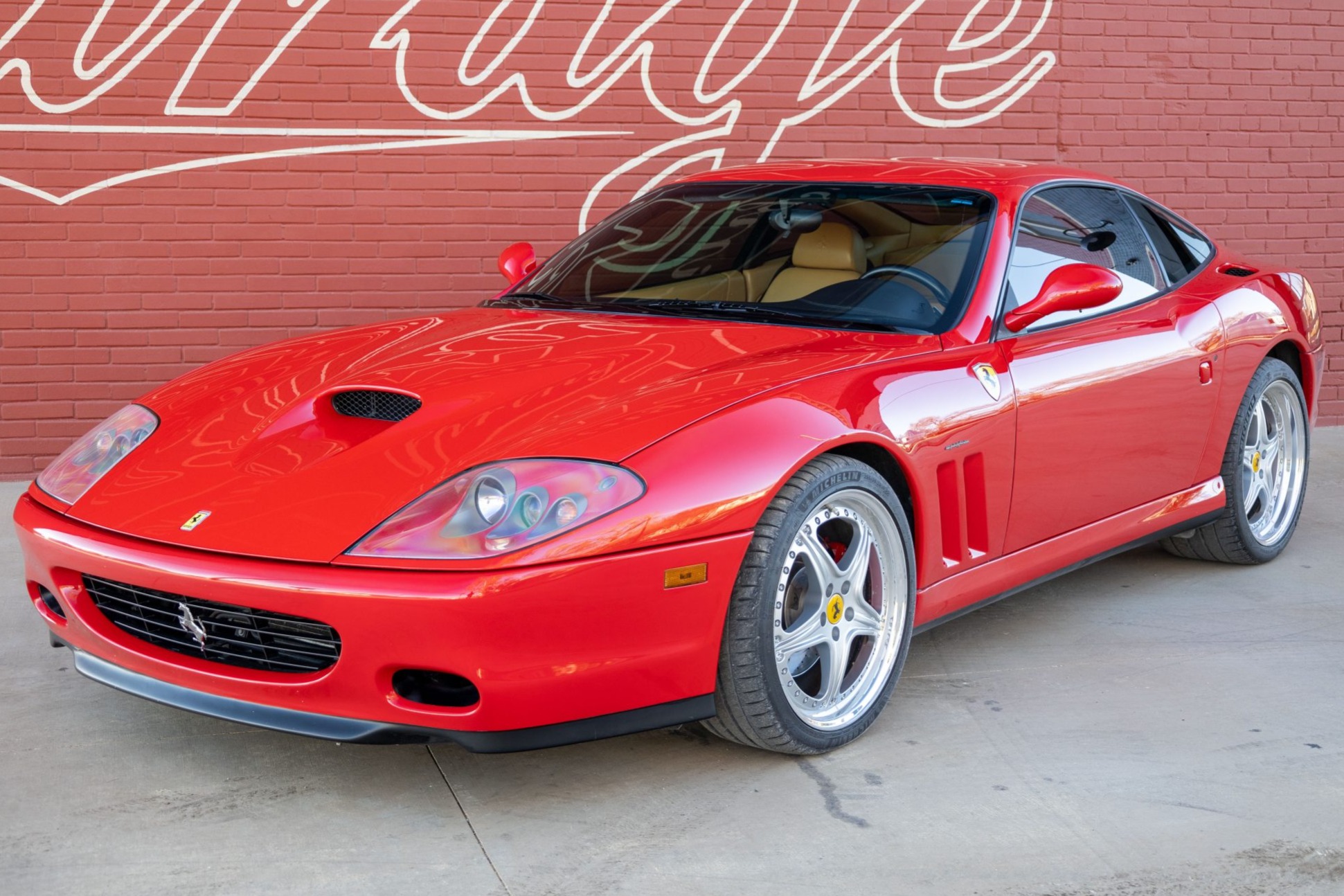 Aftermarket staggered-width 19″ wheels were mounted with 255/35 front and 305/30 rear Michelin Pilot Sport 4S tires and installed since the previous auction. The 575M featured a Skyhook suspension system with adaptive dampers, and braking is handled by red Ferrari-branded calipers over cross-drilled and ventilated rotors at all four corners.