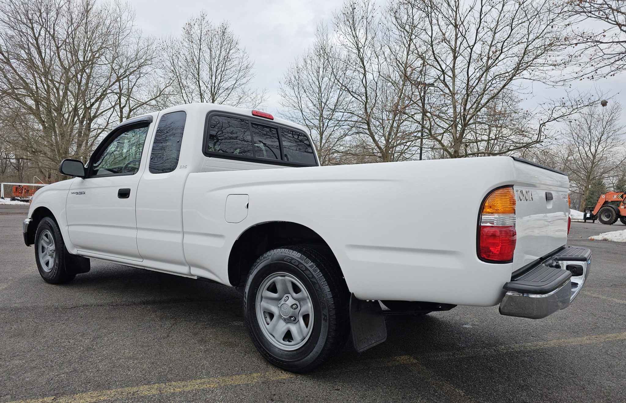 The 15″ five-spoke steel wheels are mounted with 205/75 Goodyear Wrangler HP tires showing date codes from 2003. Braking is handled by front discs and rear drums. Brake lines and fittings were replaced in preparation for the sale.