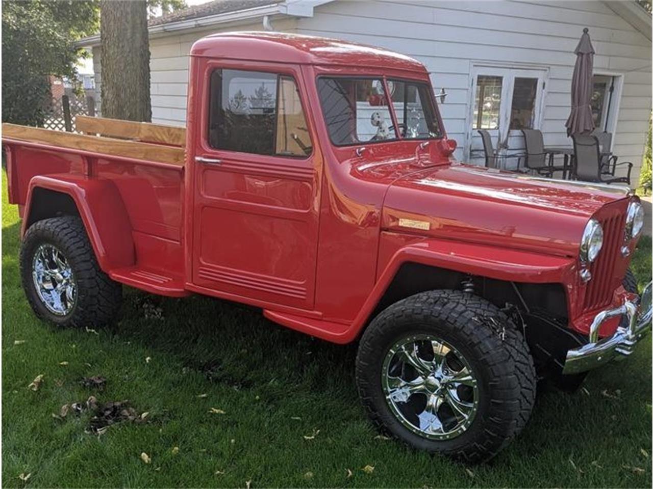 1948 Willys Restomod 4x4 pickup in candy apple red with a black seat with red piping