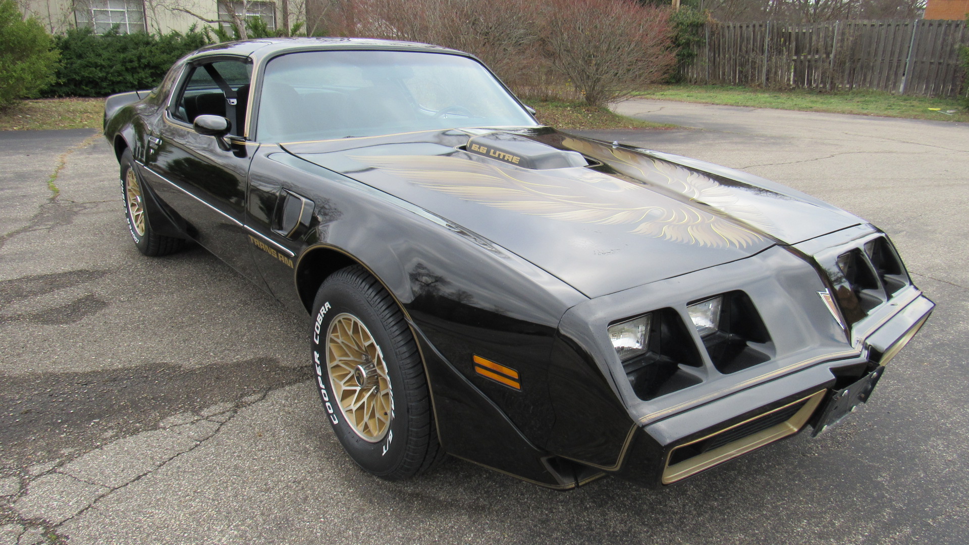 The 15″ gold-finished snowflake wheels were mounted with 225/70 Cooper Cobra Radial G/T tires in December 2024. The car is equipped with power steering, and stopping power is provided by power-assisted front discs and rear drums. The selling dealer states that brake work in November 2024 included replacing the booster, master cylinder, proportioning valve, lines, hoses, calipers, pads, drums, and wheel cylinders.