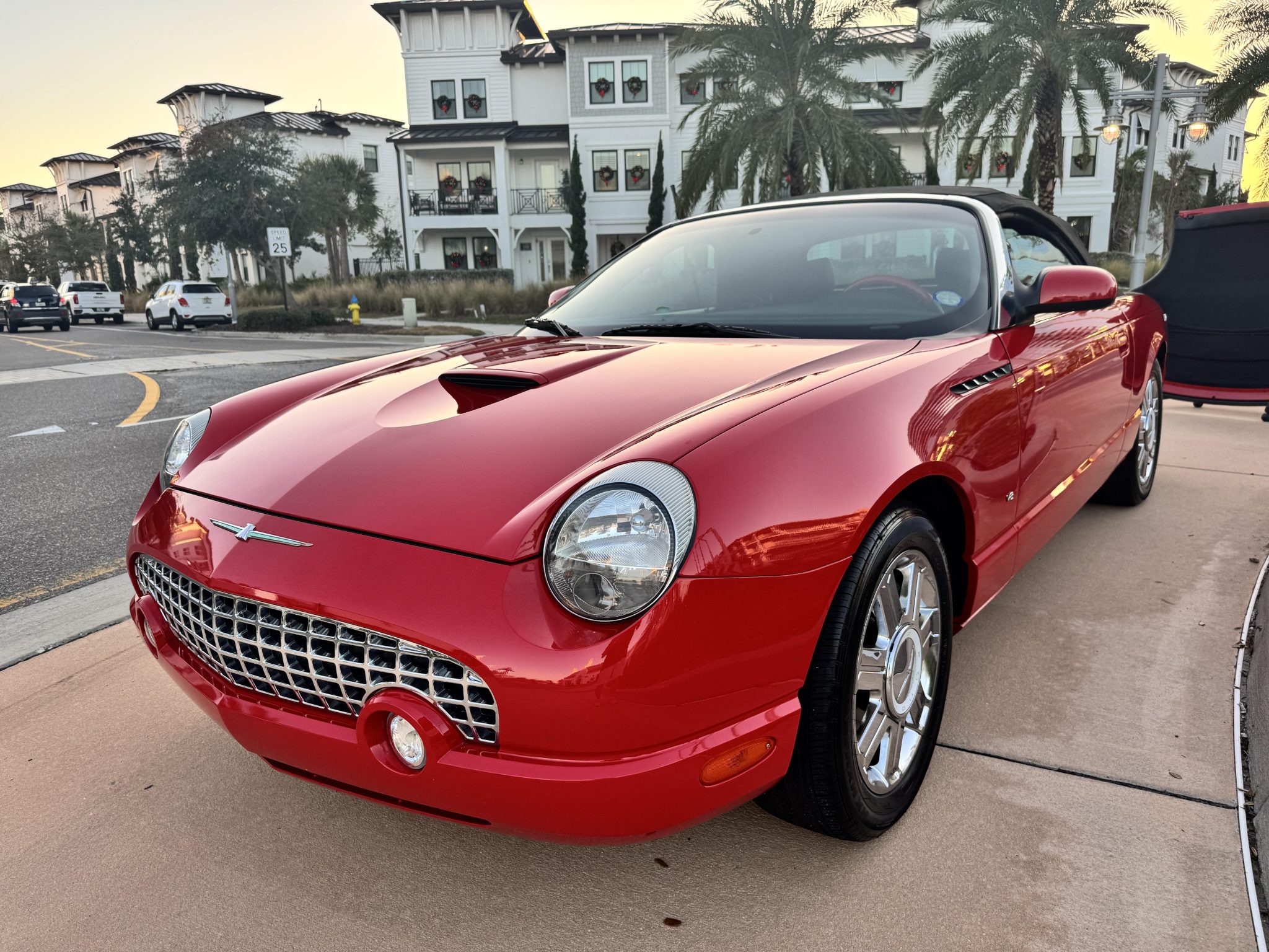 Chrome-plated 17″ seven-spoke Premium wheels feature Thunderbird-branded center caps and wear 235/50 Michelin Pilot HX MXM4 tires. The car is equipped with four-wheel independent suspension, ventilated anti-lock disc brakes, and traction control.