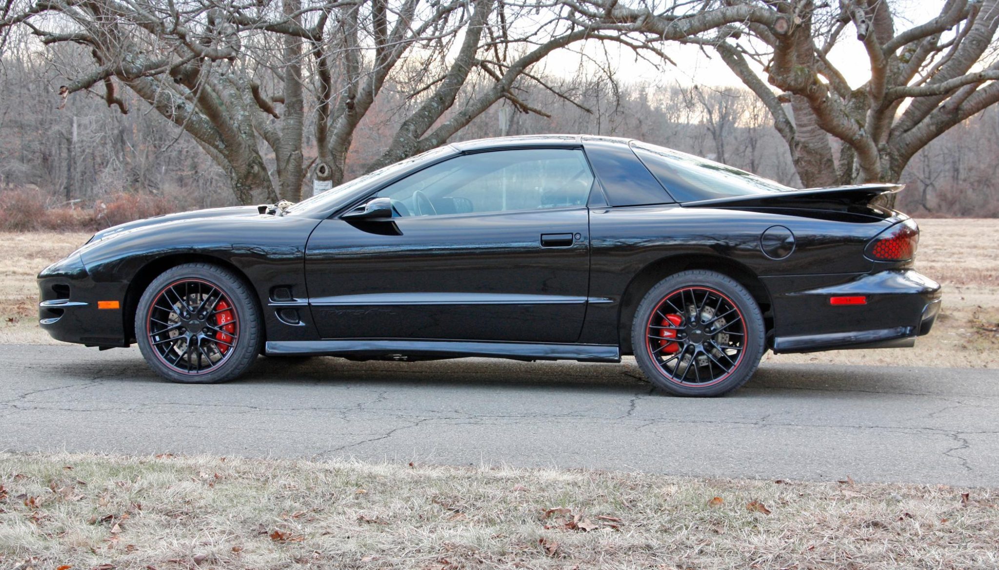Black-finished 18″ alloy wheels with red accents are mounted with Ironman tires. The WS6 Ram Air Performance and Handling Package included revised suspension tuning and a power steering cooler. A Baer Brakes brake kit has been retrofitted up front, while Eradispeed rotors have been installed at all four wheels.