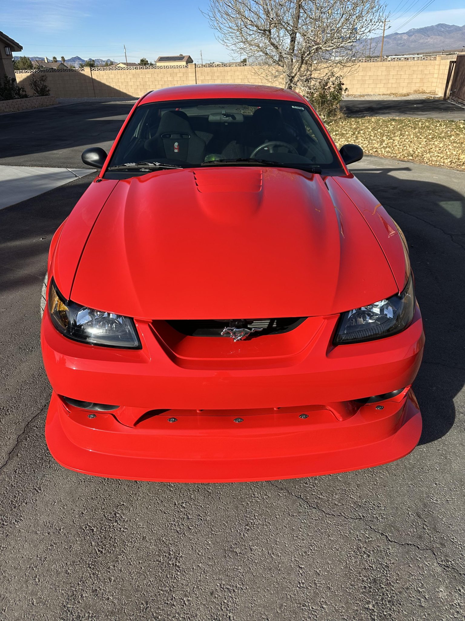 The 18″ five-spoke cast aluminum wheels are mounted with 265/40 BFGoodrich g-Force T/A tires. The Cobra R package features an independent rear suspension along with Bilstein shocks, stiffer Eibach springs, and larger sway bars than the contemporary SN95 Mustang. Braking is handled by four-wheel ventilated discs with four-piston Brembo front calipers.