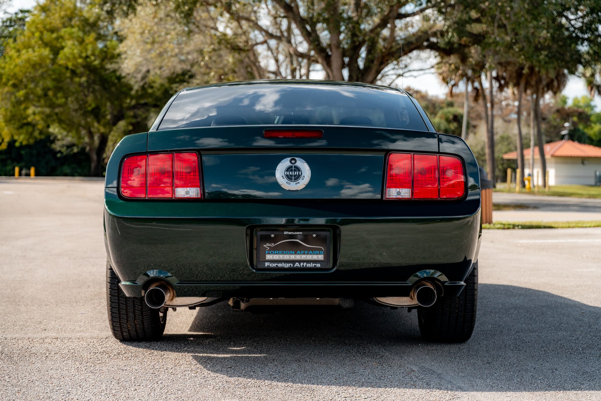 Bullitt-specific 18″ cast-aluminum Dark Argent wheels are mounted with BFGoodrich g-Force T/A KDWS tires measuring 235/50 all around. Bullitt examples were factory-equipped with stiffer springs, revised dampers, and a strut-tower brace. Stopping power is provided by four-wheel disc brakes.