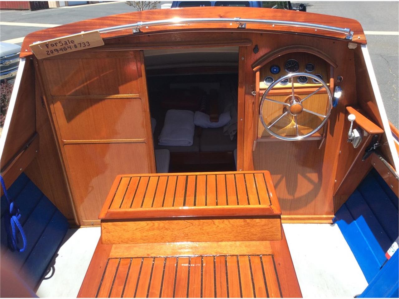 This restored 22-foot 1966 Chris-Craft Cutlass boat is one of only 350 made between 1964 and 1968 and is reportedly number 53 of 65 built for the 1966 model year