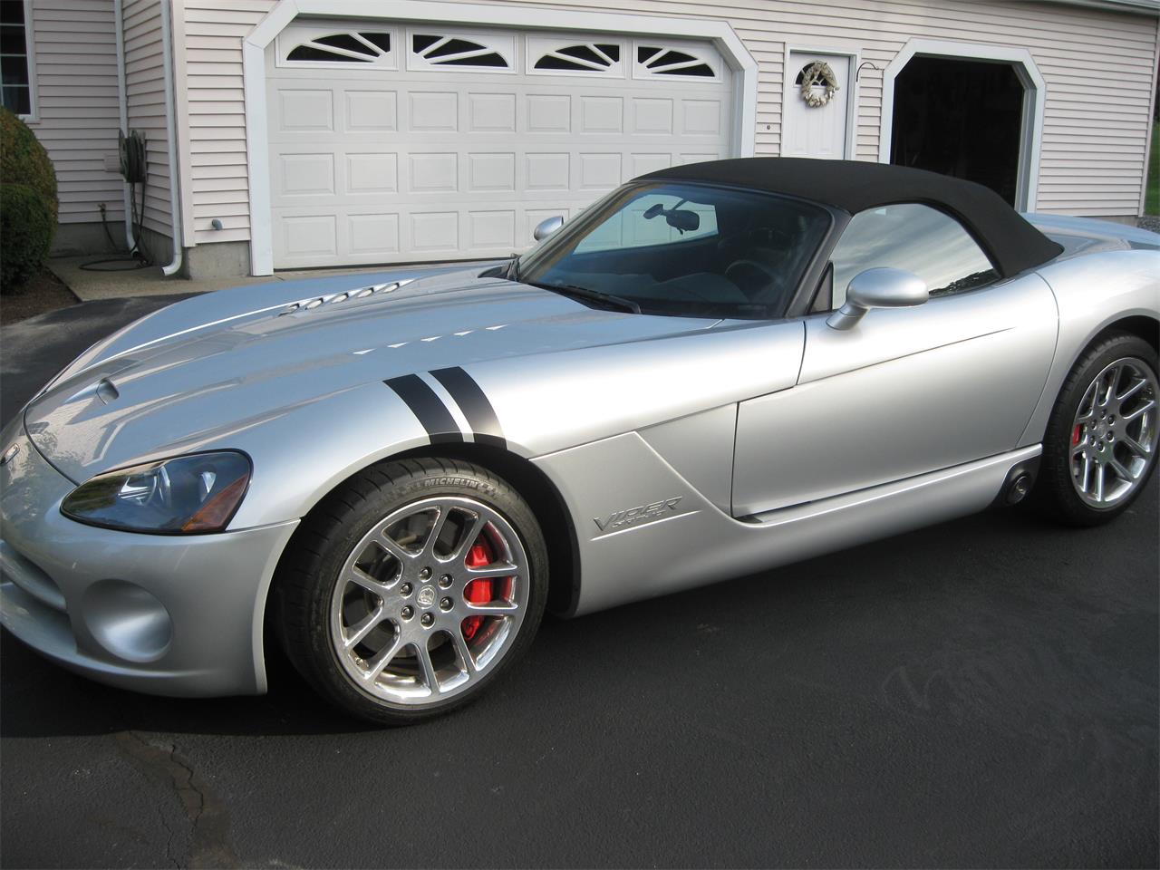 2004 Dodge Viper SRT10 in bright silver with a black soft top and black interior