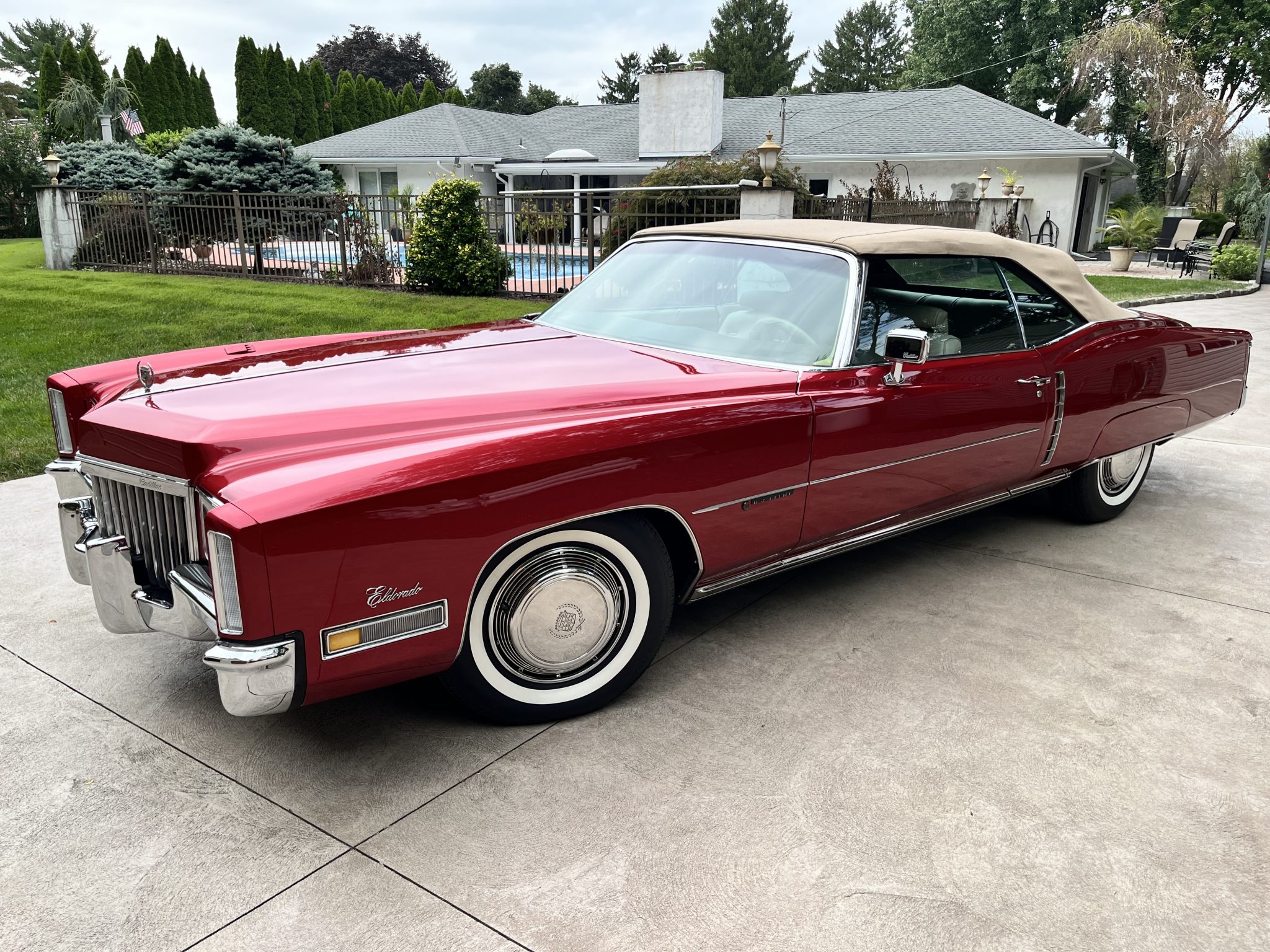 The 15″ steel wheels feature polished covers and are mounted with 235/60 Diamond Back Auburn Premium whitewall tires. The Eldorado featured a torsion bar front suspension and a coil-sprung solid rear axle along with Automatic Level Control and power steering. Braking is handled by front discs and rear drums.