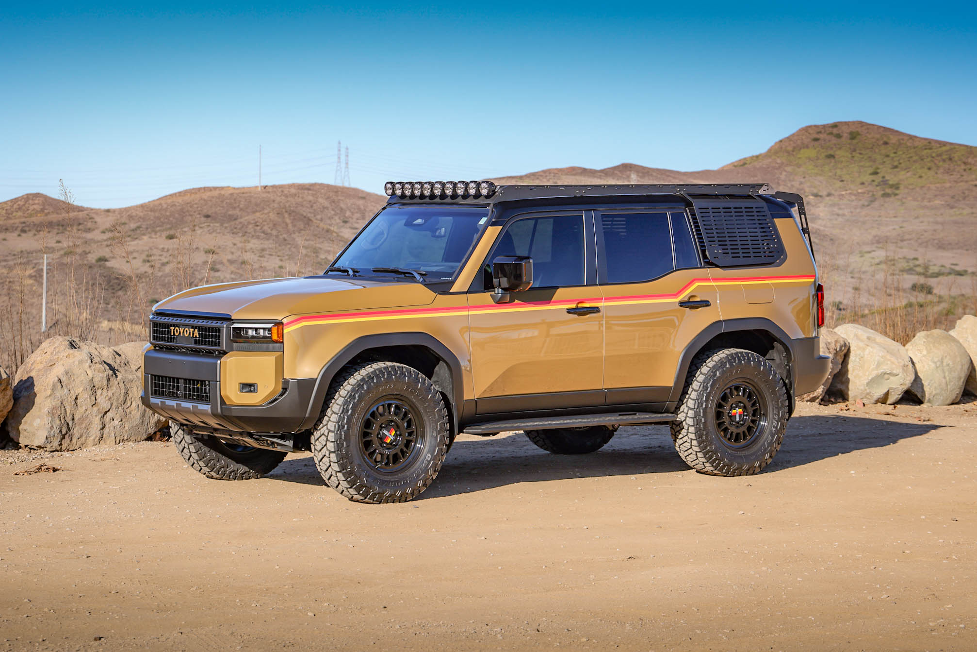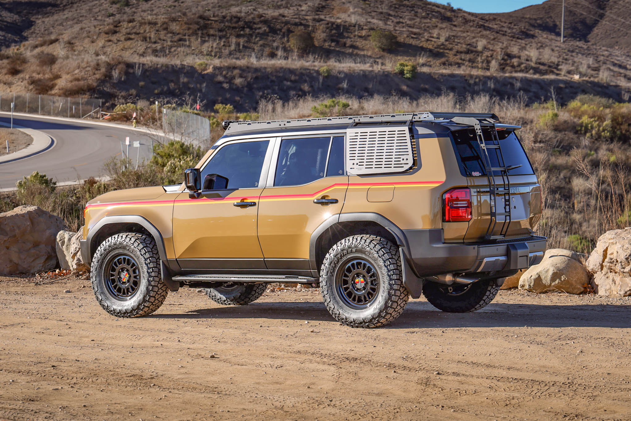 Black-finished 18″ Method Race wheels are mounted with 35×12.5″ Toyo Open Country R/T Trail tires. A Westcott Designs 2.5″ lift kit has been added. The truck is equipped with a front stabilizer bar disconnect mechanism along with Crawl Control, Multi-Terrain Select, and Downhill Assist Control.
