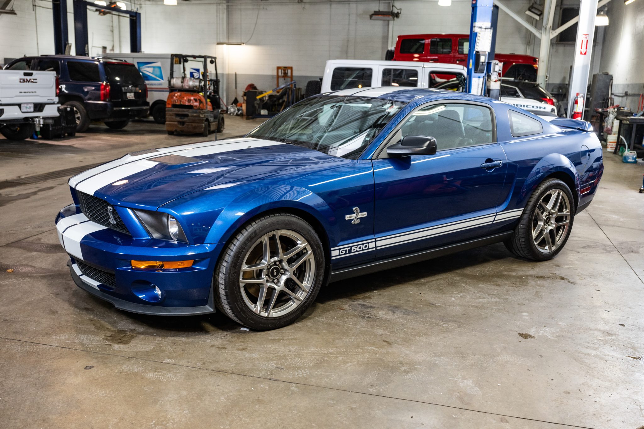 The 19″ and 20″ split five-spoke alloy wheels are mounted with Michelin Pilot Sport 4S tires measuring 275/40 up front and 295/35 out back. The car is equipped with an SVT-tuned suspension, and stopping power is provided by four-wheel disc brakes with Brembo front calipers.