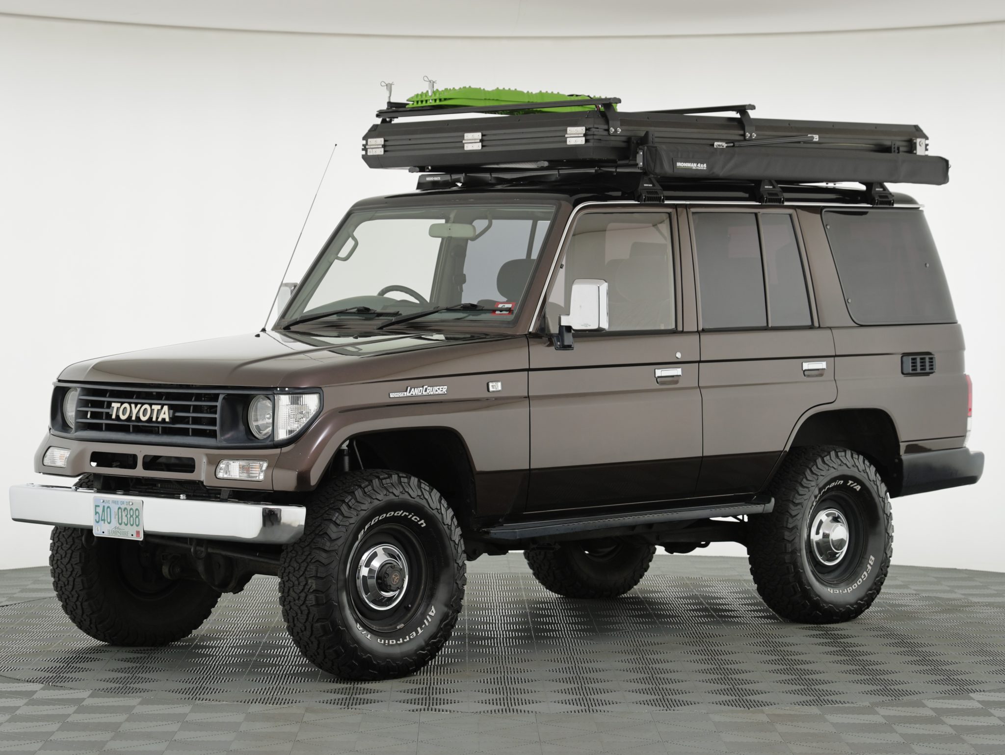 The 15″ steel wheels are mounted with 33×10.50″ BFGoodrich All-Terrain T/A KO2 tires. The truck features electronically locking front hubs, and an Ironman 2″ lift kit has been installed according to the selling dealer. The rear brake pads were replaced in preparation for the sale.