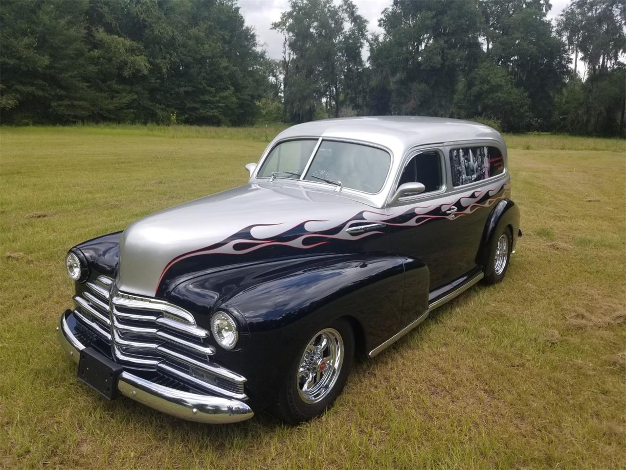 1947 Chevy Fleet Master Restomod Sedan Delivery -ZZ4 350ci V8 engine -405 torque 375 horse power -Aluminum L98 Lt1 Heads -350turbo trans with shift kit and Lokar shifter -Edelbrock carburetor with working custom air intake scoop -Walker custom radiator -All steel steel braided line and hoses -Custom chrome reservoir for all fluids -Vintage A/C with heat system r34 / "Stays Super cold in Florida heat!" -Power steering -Late model Chevy power brakes -Custom modern front suspension -Chevy late model rear end -Custom black leather interior -Caddy front power seats -Tilt steering wheel -Custom door panels -Custom headliner -Custom back delivery area -Custom VDO Gauges -Custom DVD with screen player in rear roof -Custom headphone set up wireless in rear -Custom Power Acoustik radio with back up exterior cameras -Kenwood power amplifier -All manuals and remotes for devices in the vehicle -Manuals for front suspension -205/75/15 wheels in front -235/70/15 wheels in rear -Custom chrome wheels The car it truly beautiful and amazing to drive