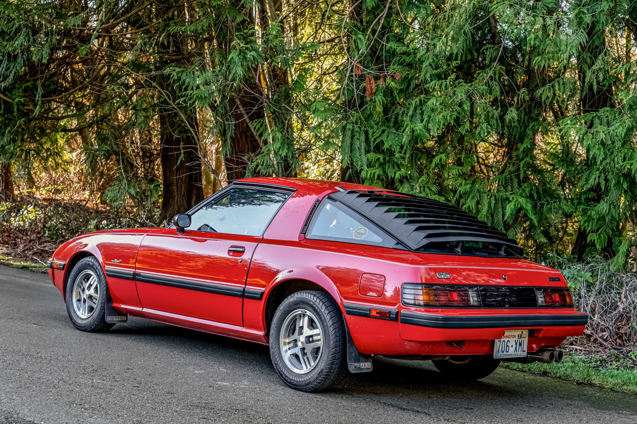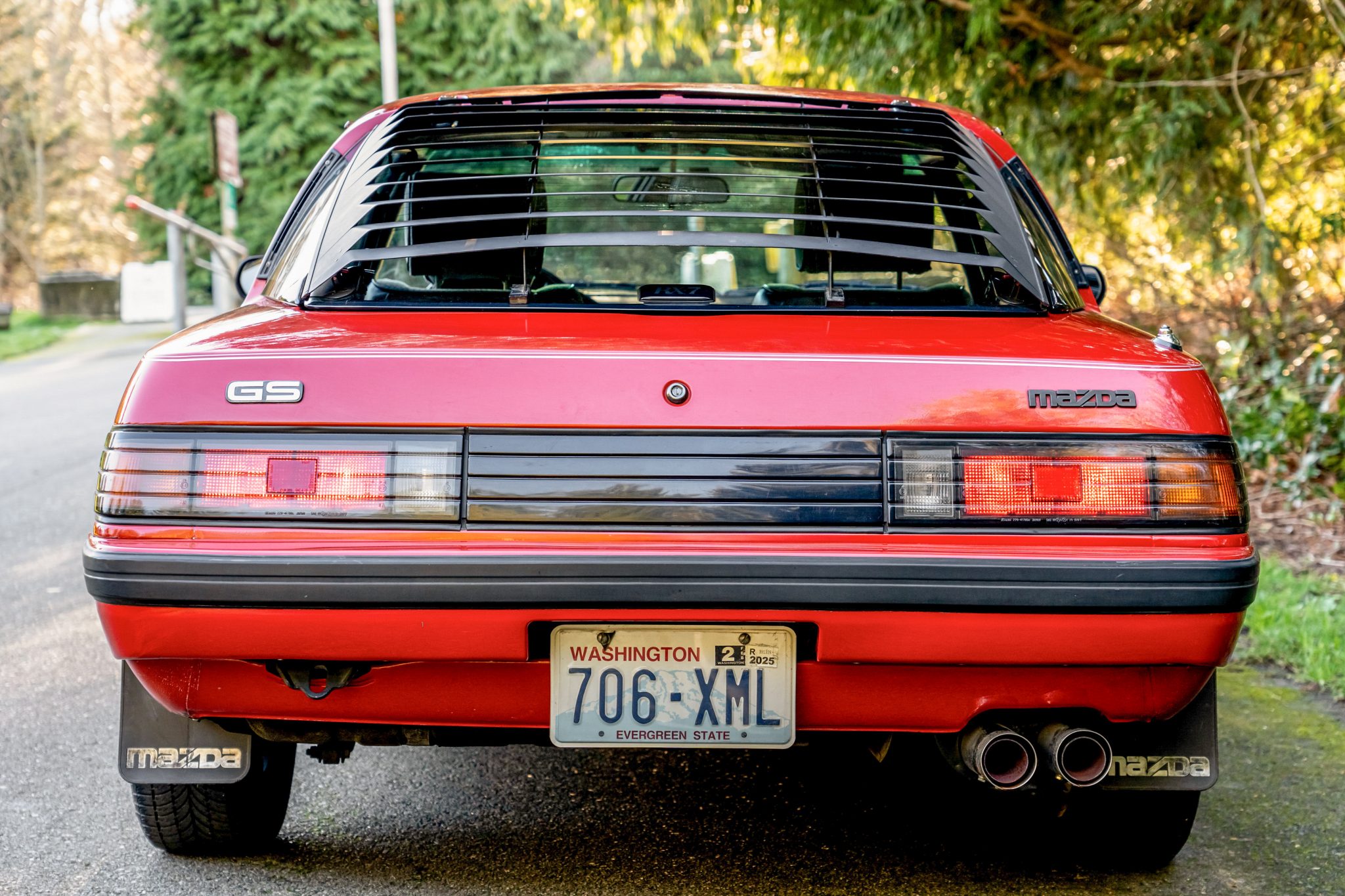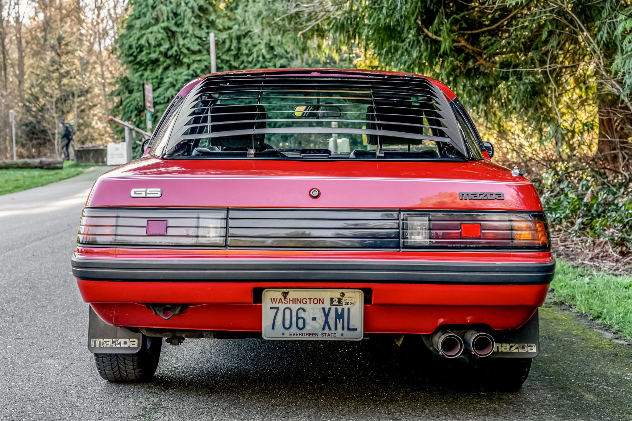 The 13″ four-spoke alloy wheels are mounted with a mix of Goodyear and Toyo tires measuring 185/70. The right-front wheel has curb marks. The car is equipped with power-assisted front disc brakes.