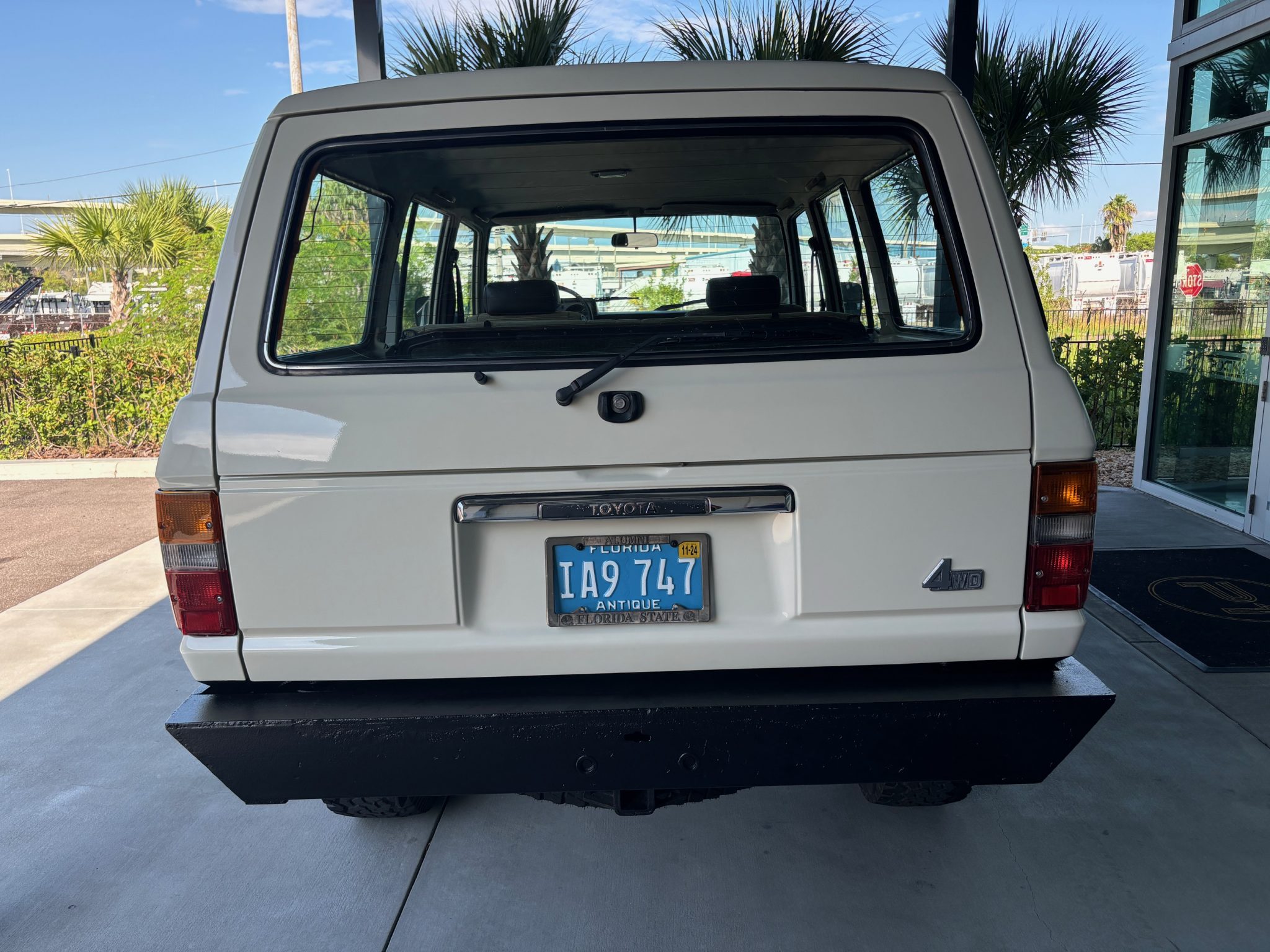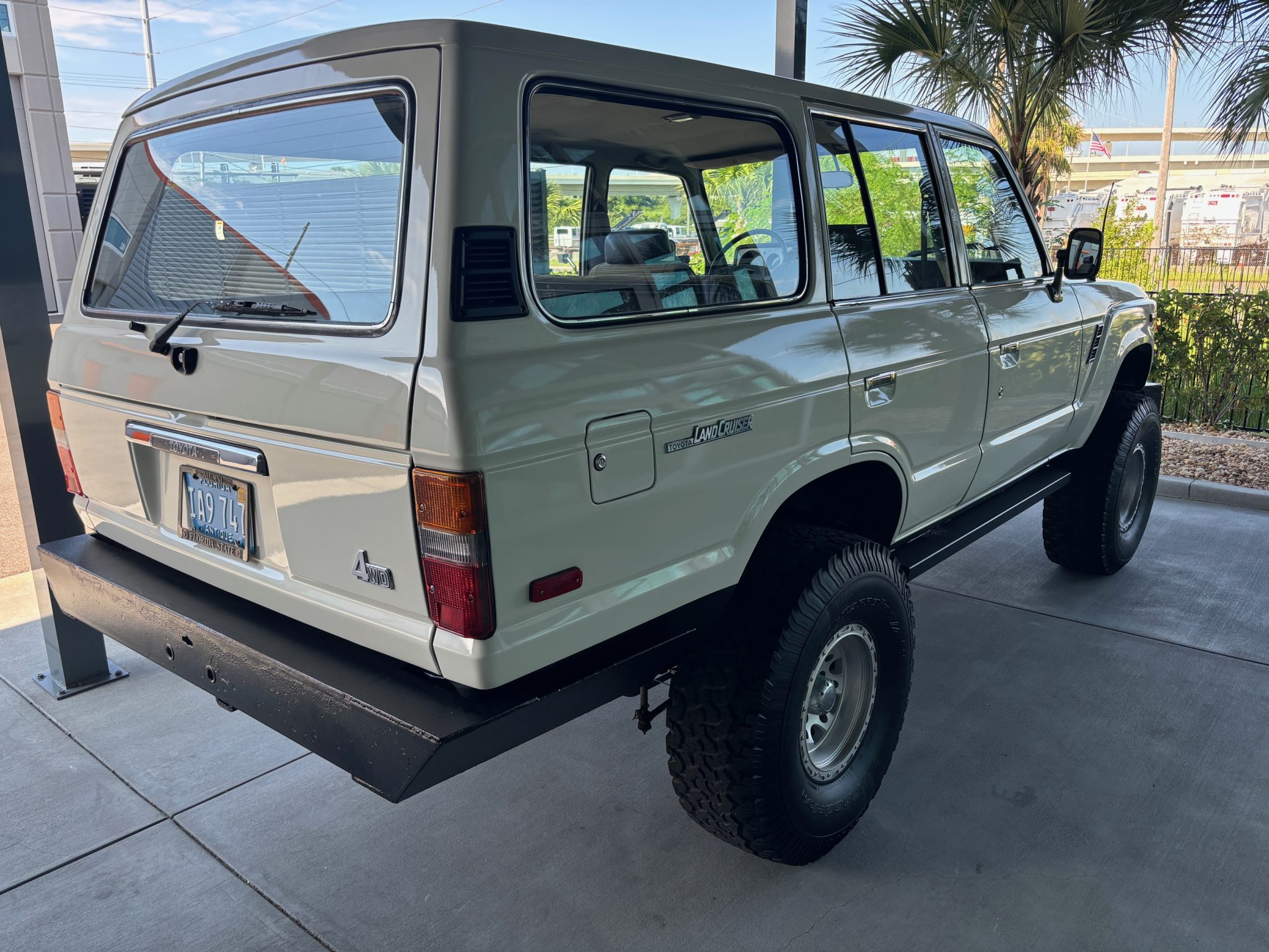 Aftermarket 15″ aluminum wheels are mounted with 35×12.50″ BFGoodrich All-Terrain KO tires. The truck is equipped with manually locking front hubs, and the suspension is modified with a Man-A-Fre high-steer kit, a 6″ sping-over-axle lift kit, Bilstein dampers, and front and rear sway bars with quick-disconnect end links. Braking is handled by braided stainless-steel lines feeding front discs and rear drums. The brake master cylinder and parking brake cable were replaced in 2022.