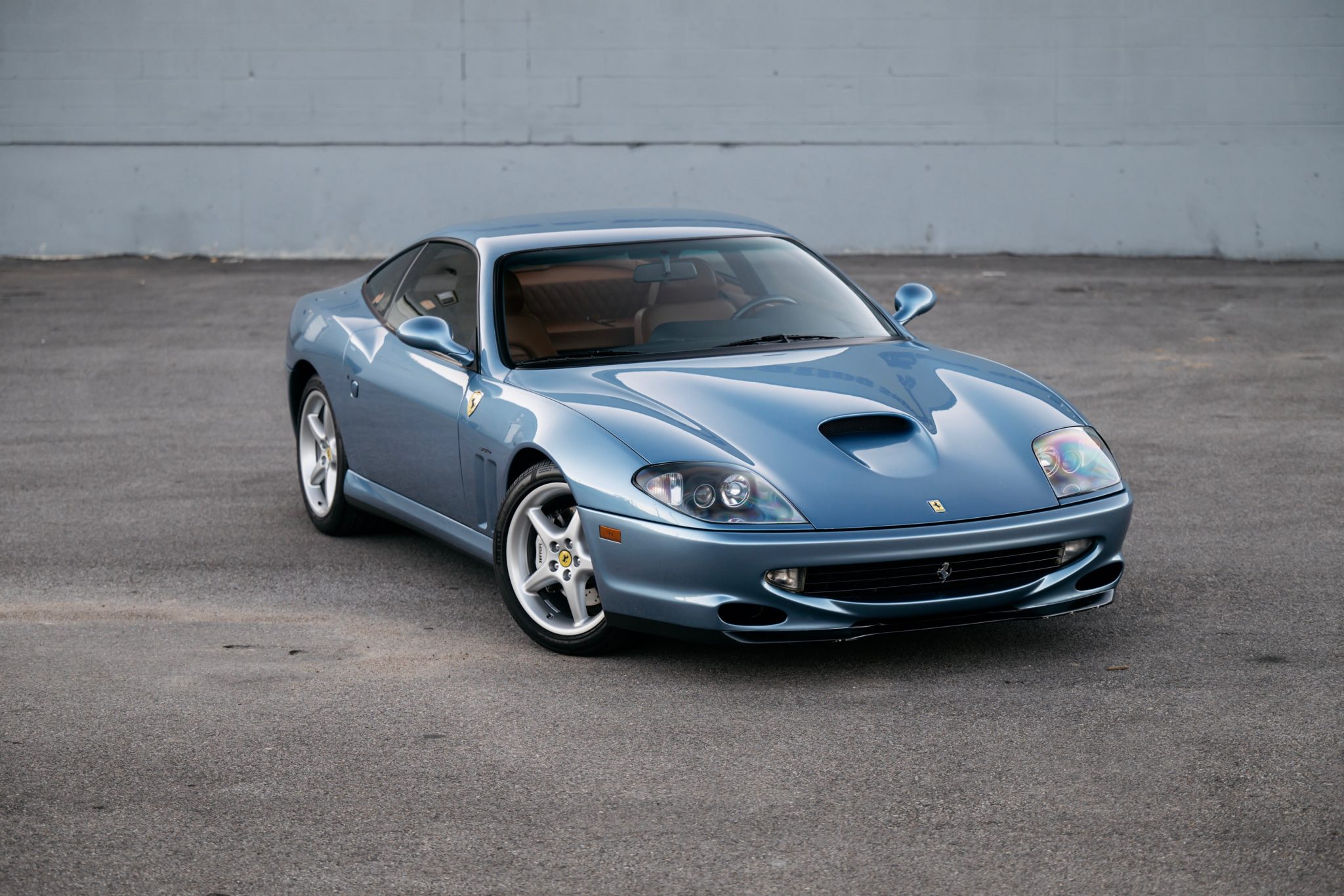 The 18″ five-spoke alloy wheels are mounted with Pirelli P Zero Rosso tires. Braking is handled by silver-finished Ferrari-branded calipers over cross-drilled and ventilated rotors at all four corners. Work under current ownership included replacing the front control arm bushings, ball joints, and sway bar end links as well as the brake lines, rotors, pads, and brake cooling ducts.