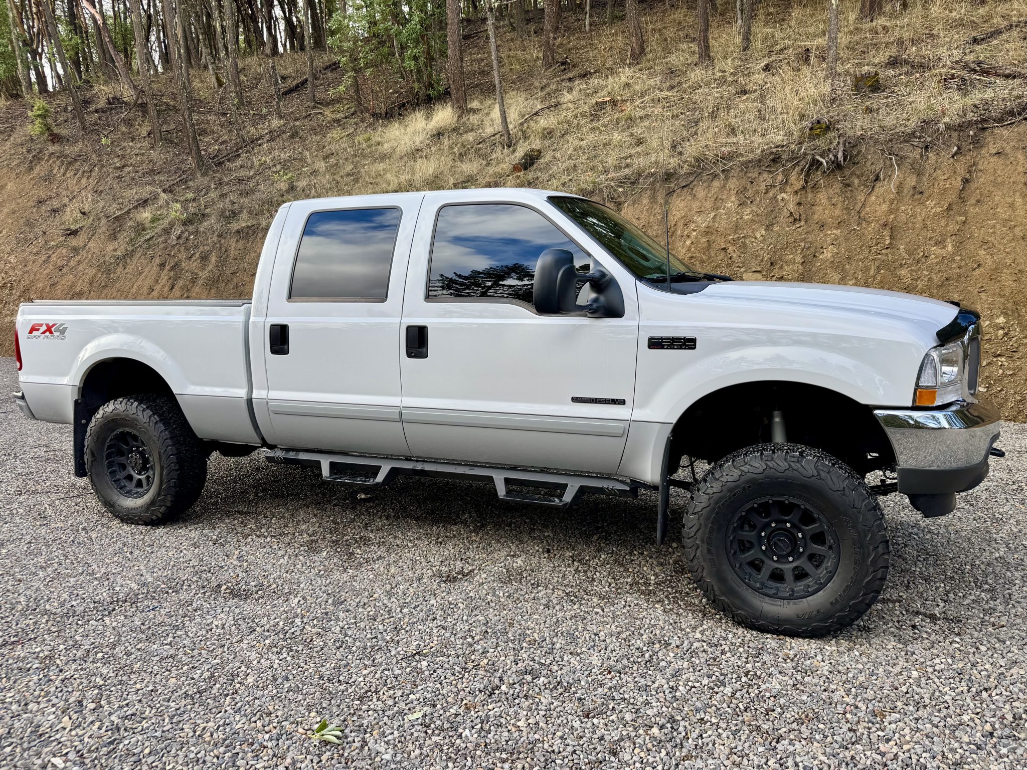 The 17″ aftermarket wheels wear a black finish and are mounted with 315/70 BFGoodrich All-Terrain Baja Champion tires. The truck has been fitted with a front levelling kit and aftermarket adjustable shocks. Stopping power is provided by four-wheel disc brakes.