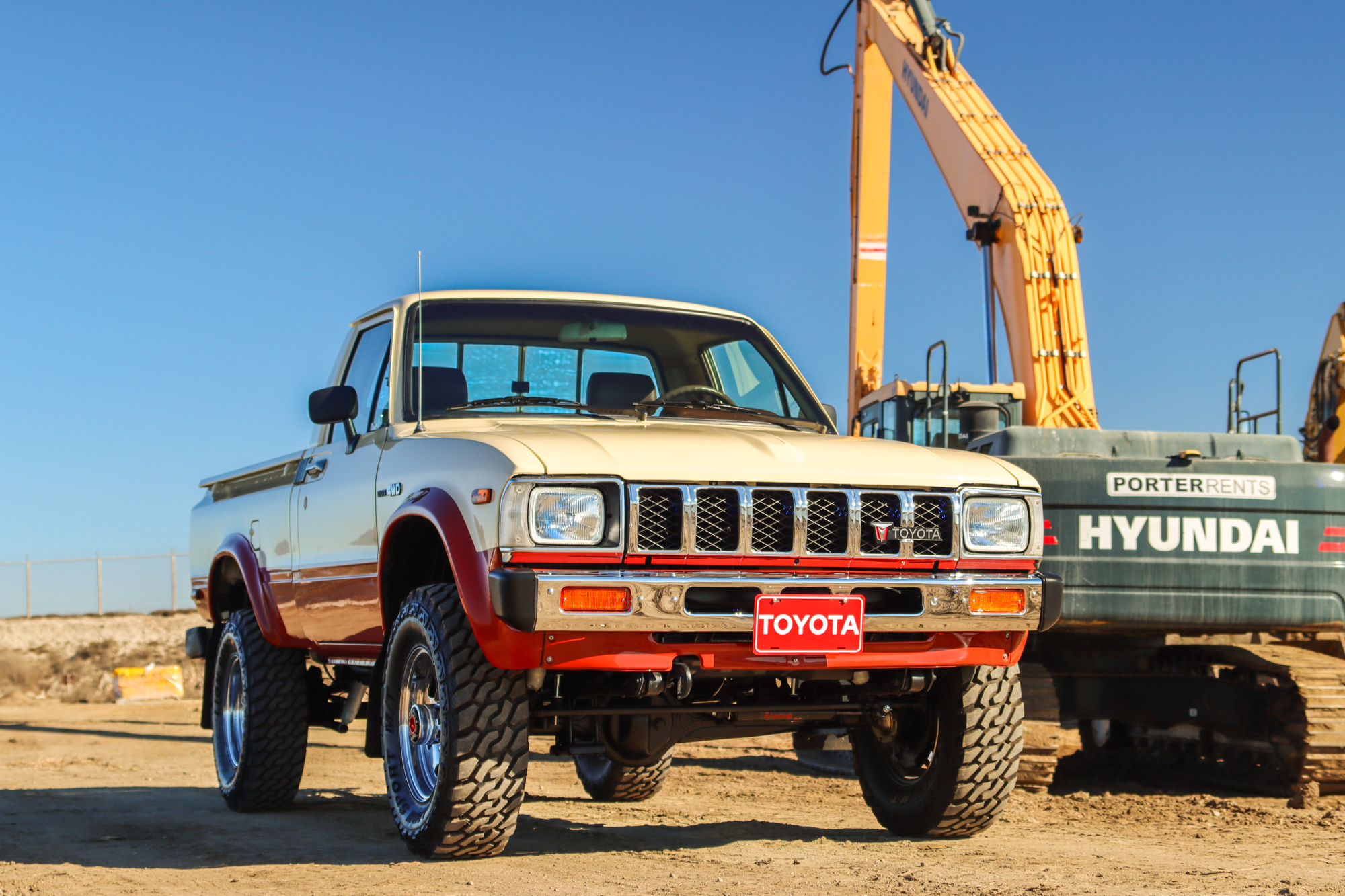 The 15″ chrome wheels are mounted with Leao Lion Sport M/T tires. The truck is equipped with power steering and manually locking front hubs, and braking is provided by power-assisted front discs and rear drums. A Rancho steering stabilizer and shocks were replaced in preparation for the sale, according to the seller.