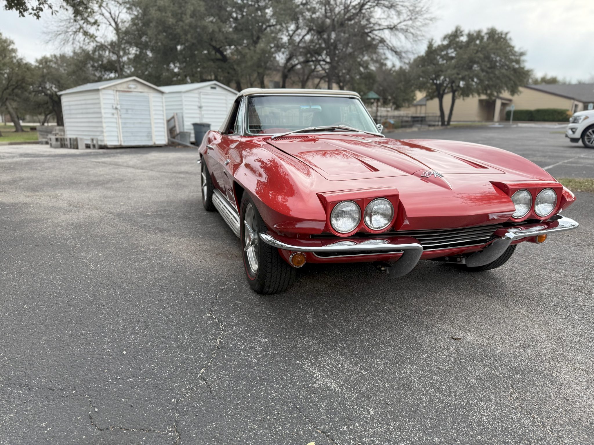 American Racing 15″ Torq Thrust Wheels were mounted with 215/70 BFGoodrich Silvertown Radial tires in 2008. The C2 was the first Corvette to offer fully independent suspension, with upper and lower control arms at the front and a three-link setup with a transverse leaf spring at the rear. Power steering and four-wheel disc brakes were added during the refurbishment. The front calipers were replaced in March 2024.