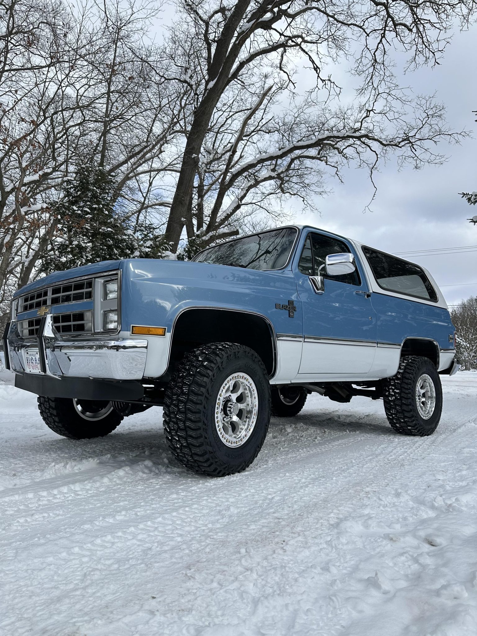 The 17″ beadlock-capable KMC wheels are mounted with 33×12.5″ Mickey Thompson Baja Boss A/T tires. The truck is equipped with a Fox steering stabilizer and rides on a lifted suspension as well as Fox shock absorbers. Braking is provided by power-assisted front discs and rear drums.