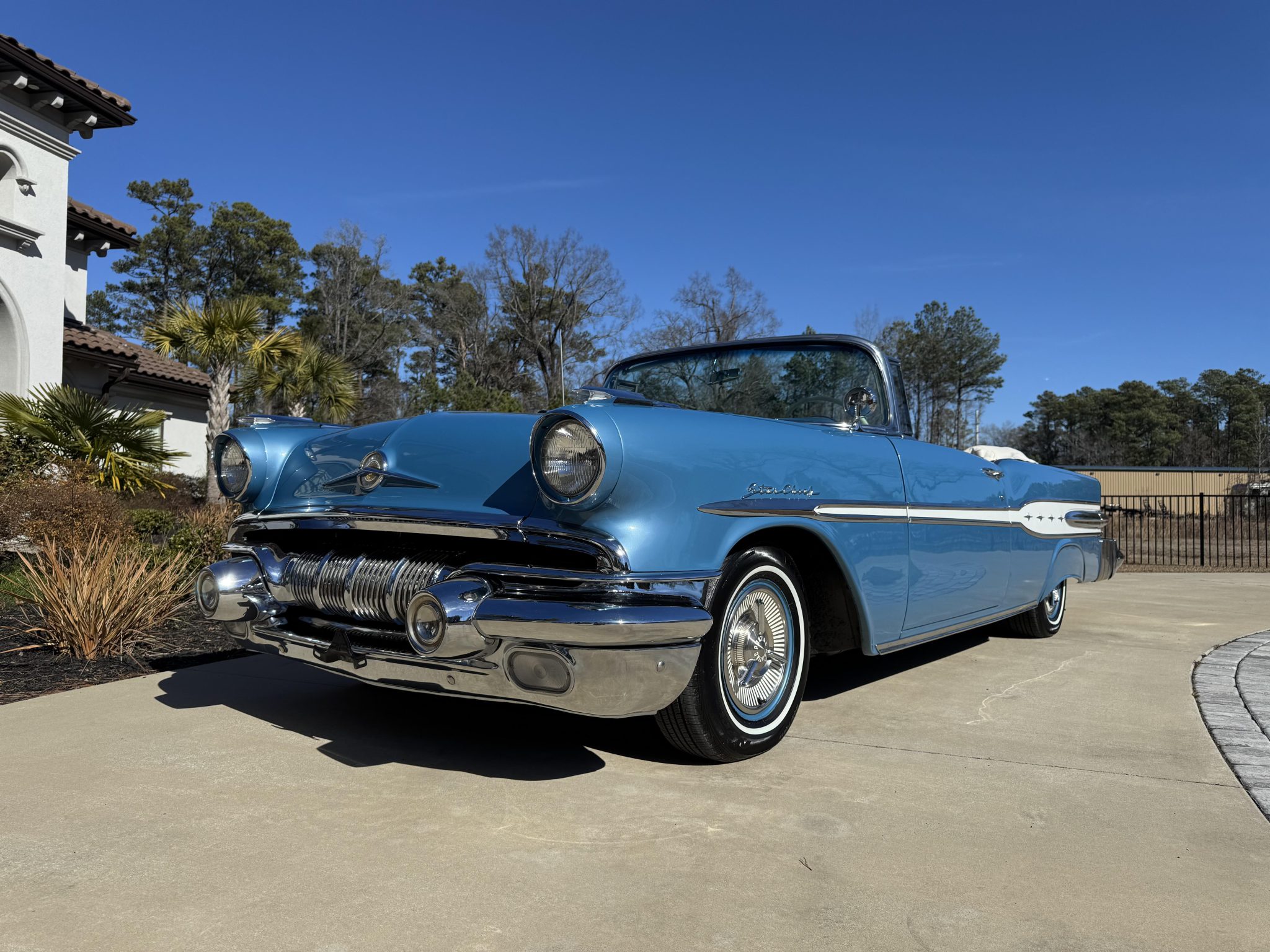 The 14″ steel wheels feature chrome hubcaps. The car is equipped with power steering, and the brake system was overhauled during the refurbishment.