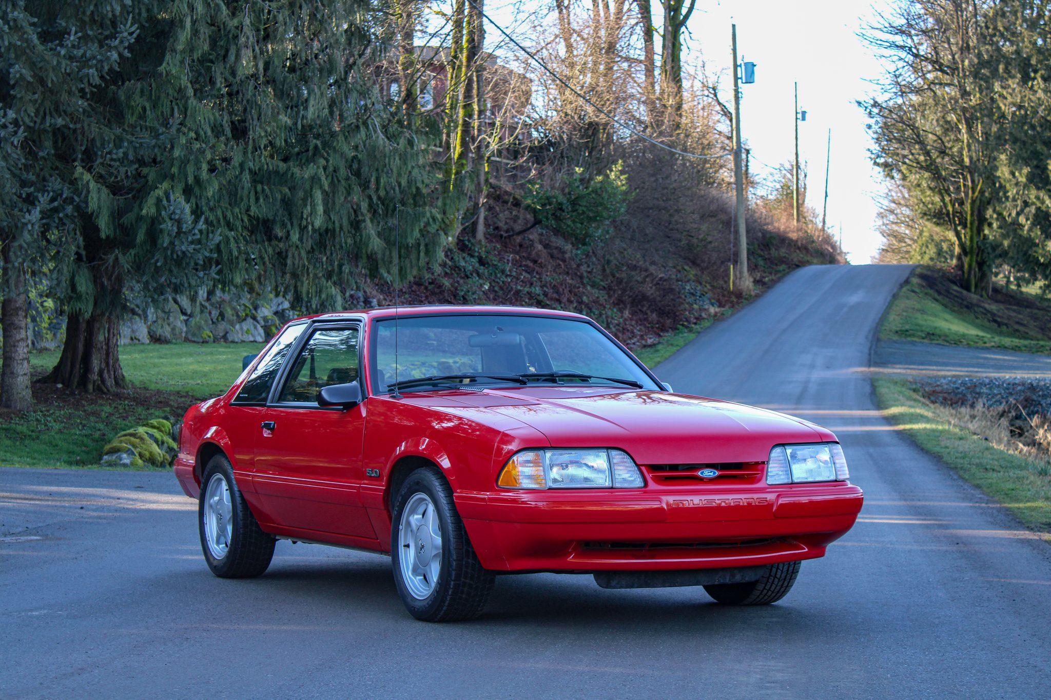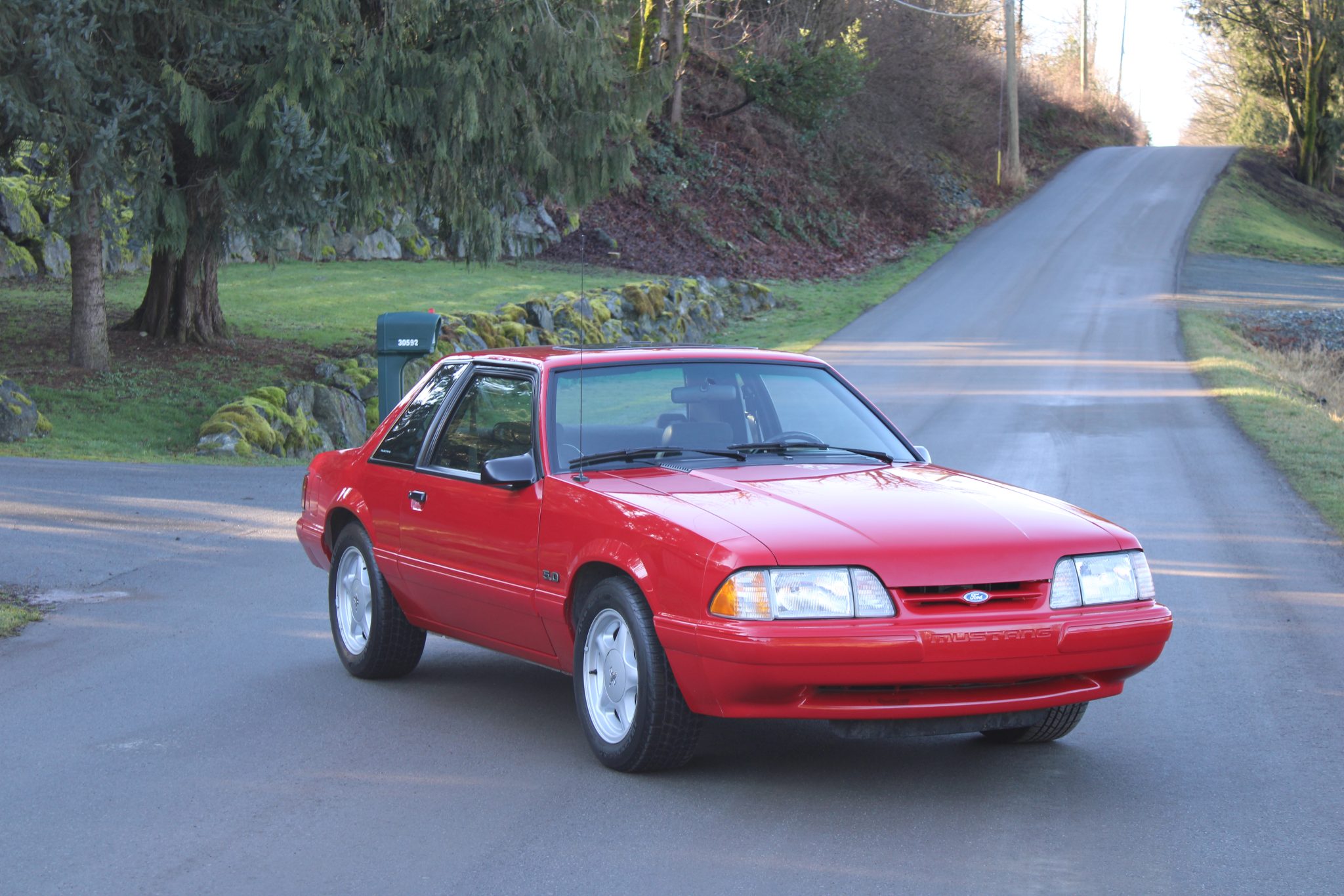 Silver 16″ Pony alloy wheels are mounted with BFGoodrich Traction T/A tires. Standard equipment included a Handling Suspension Package featuring variable-rate springs and a Quadra-Shock rear setup along with power-assisted rack-and-pinion steering. Braking is handled by power-assisted front discs and rear drums.