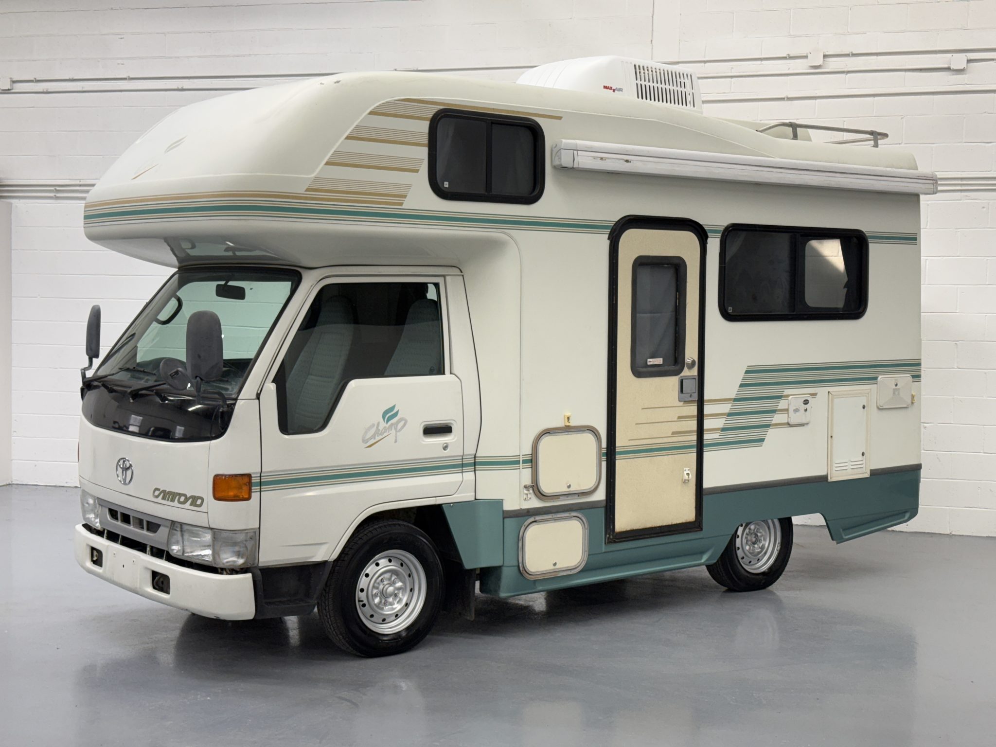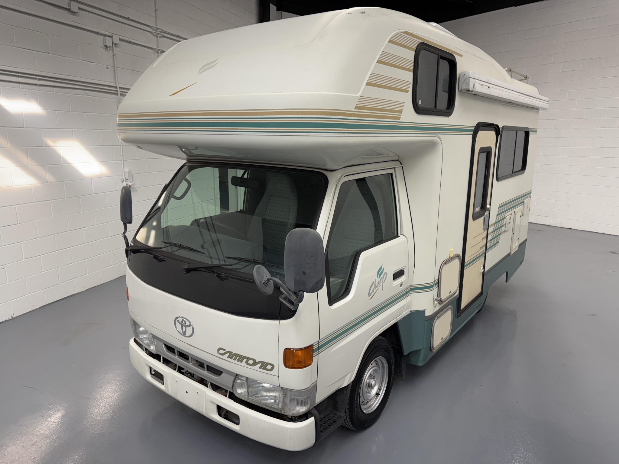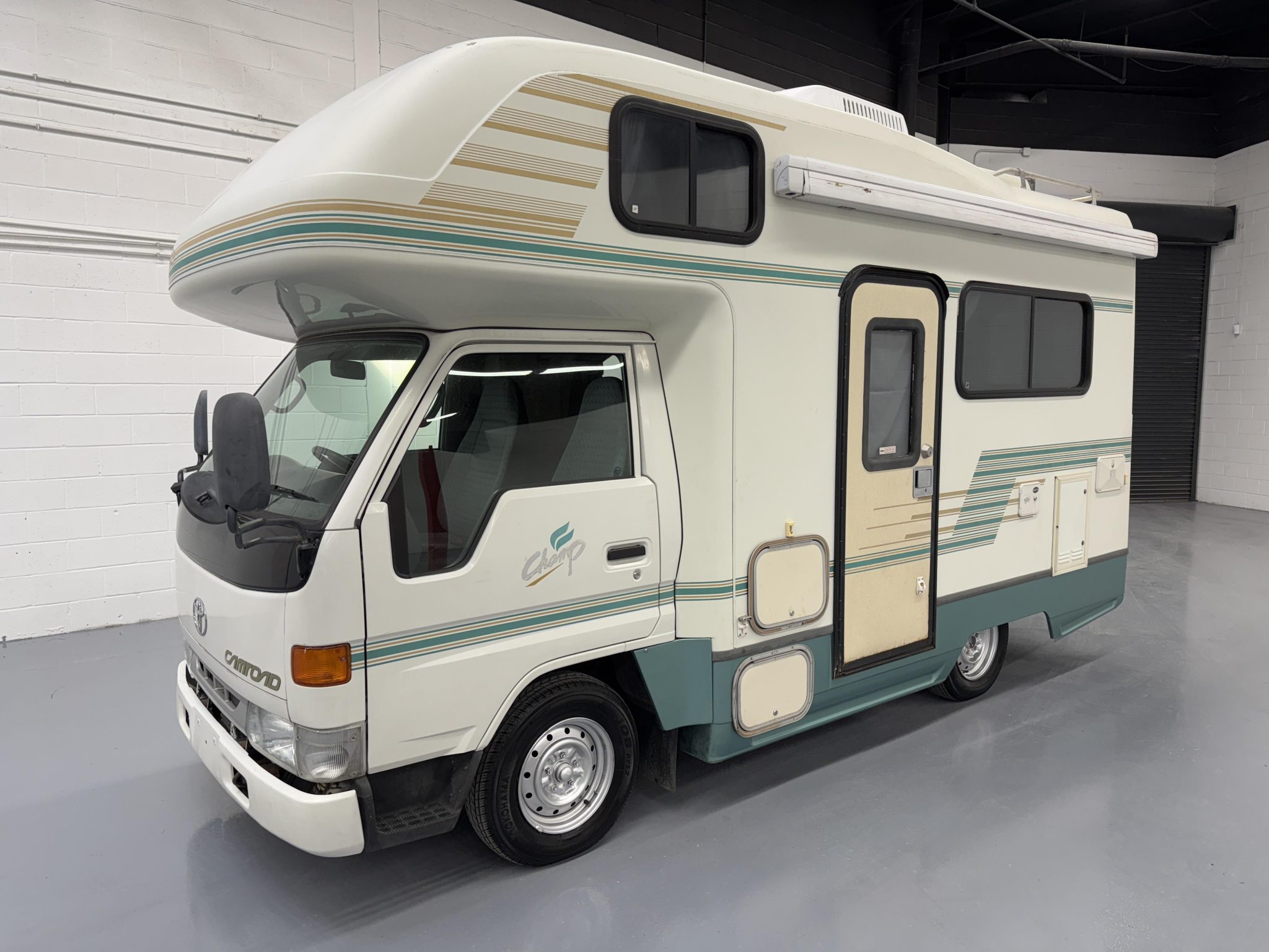 Silver-finished 14″ steel wheels wear 185-series Yokohama Job RY52 tires, and a spare is secured to the underside.