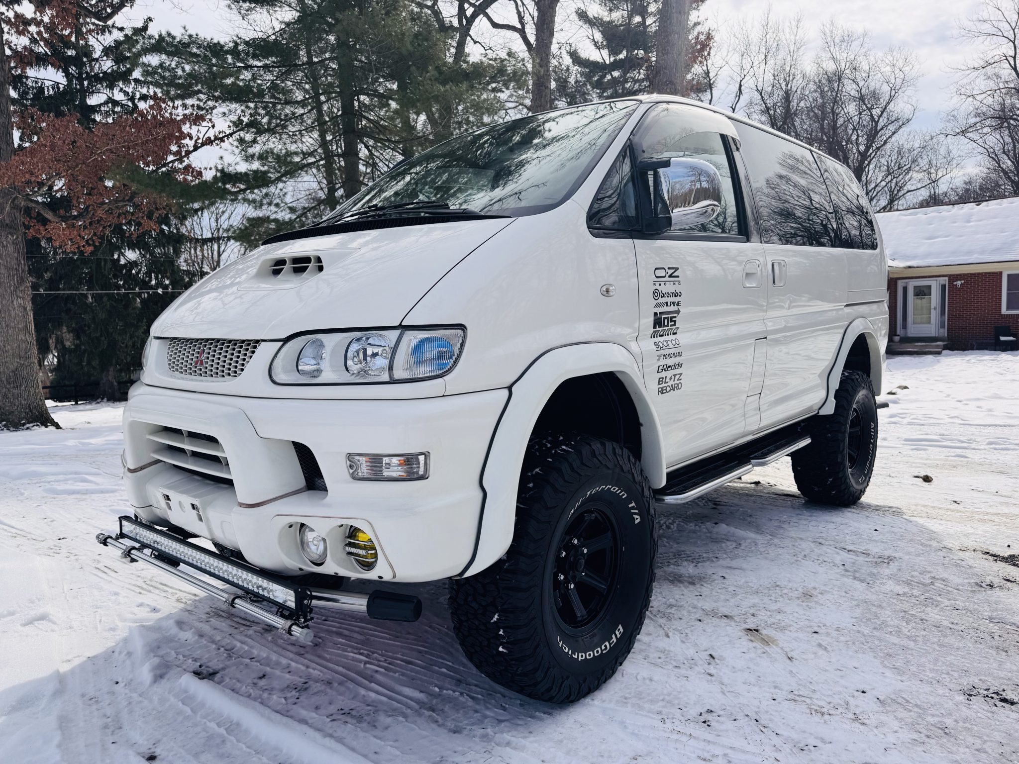 15″ alloy wheels are finished in black and wear 33×12.5″ BFGoodrich KO2 All-Terrain T/A tires. The vehicle was lifted by 1″ using Rancho Gas shock absorbers at each corner, and the brake calipers were painted red.