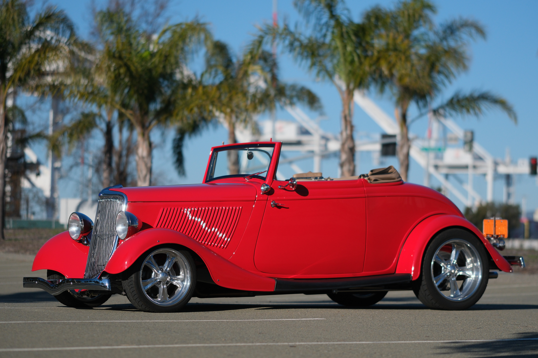 The 17” front and 20” rear Billet Specialties wheels are wrapped in 215/40 and 255/45 Nitto tires that were mounted in 2023. The boxed steel frame is equipped with rack-and-pinion steering as well as independent front and rear suspension assemblies riding on adjustable coilovers and polished control arms. Braking is handled by four-wheel discs with inboard-mounted units out back, and the vacuum-assisted booster is mounted below the floor.