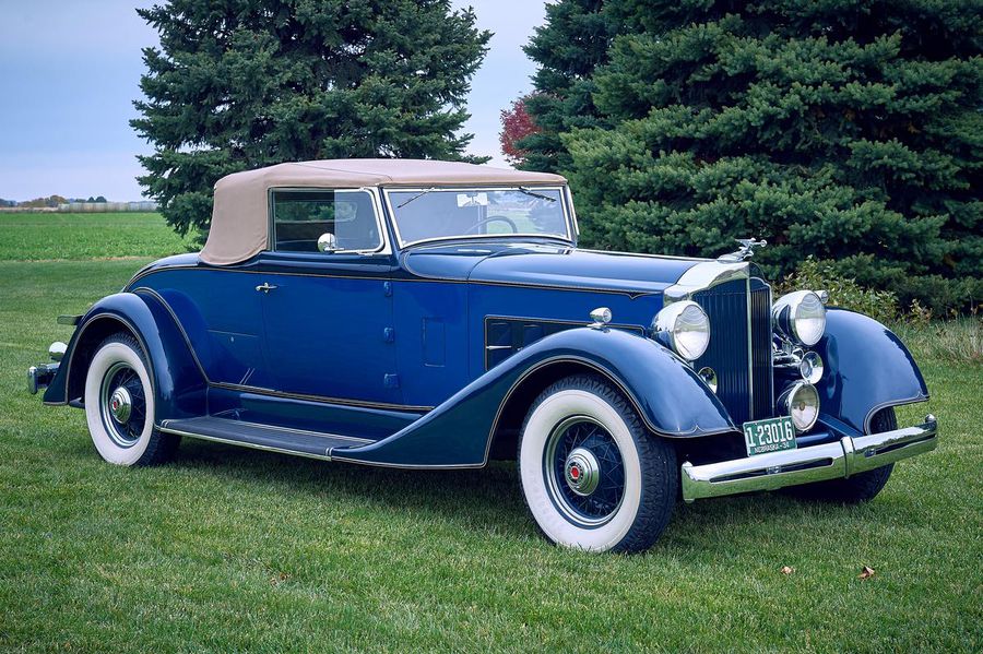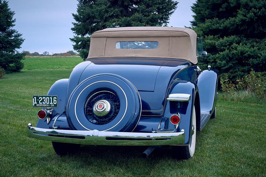 1934 Packard 1101 719, This Packard features a sleek body complemented by a rear spare mounted tire