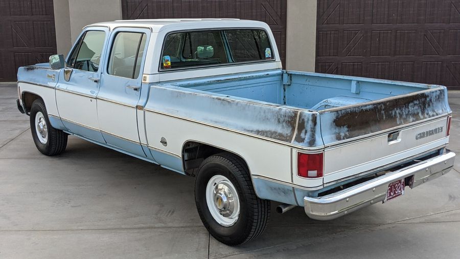 1975 Chevrolet C20 Silverado 3+3 Fully loaded Cowboy Cadillac!!! Highly optioned Silverado package with tiger wood grain trim finished in its original color of Skyline Blue and White, original 454 Big block, Ice cold working A/C 38,823 Original miles! Unbelievably well preserved original interior and she has been an Arizona truck since new absolutely zero rust dry desert find that was a local Rodeo Queen until she sat in a Barn for almost 20 years! She runs and drives very strong, recent fluids service and oil change with new Michelin tires, mostly original paint except the hood and roof that has been repainted due to sunbaking it to oblivion! I acquired the truck a few years ago and have really enjoyed it, we recently had it converted into a short bed to become the truck that Chevy should have made but never did!!! Its much more drivable and user friendly, it was professionally done with new fuel tanks, and all necessary work to make it 100% perfect! This rig is turn key enjoyable on delivery and I can help arrange transport